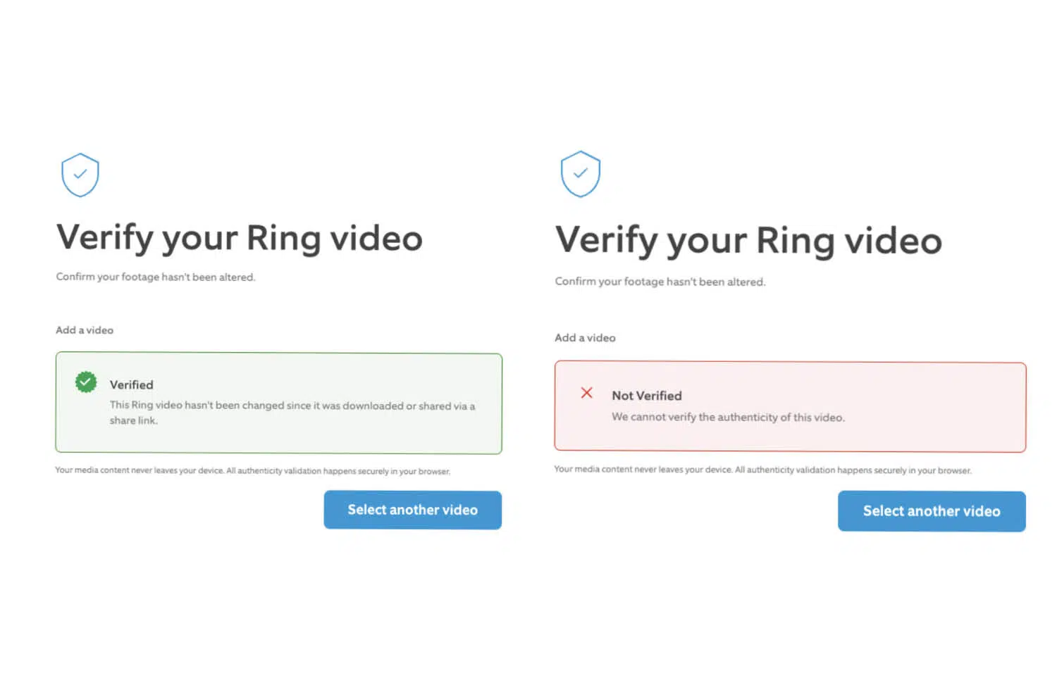 Die Überprüfung erfolgt über eine spezielle Webseite. Dort können Nutzer das erhaltene Video direkt im Browser prüfen, ohne dass die Datei an Ring hochgeladen wird. Das System zeigt anschließend sofort an, ob es sich um unverändertes Originalmaterial handelt.