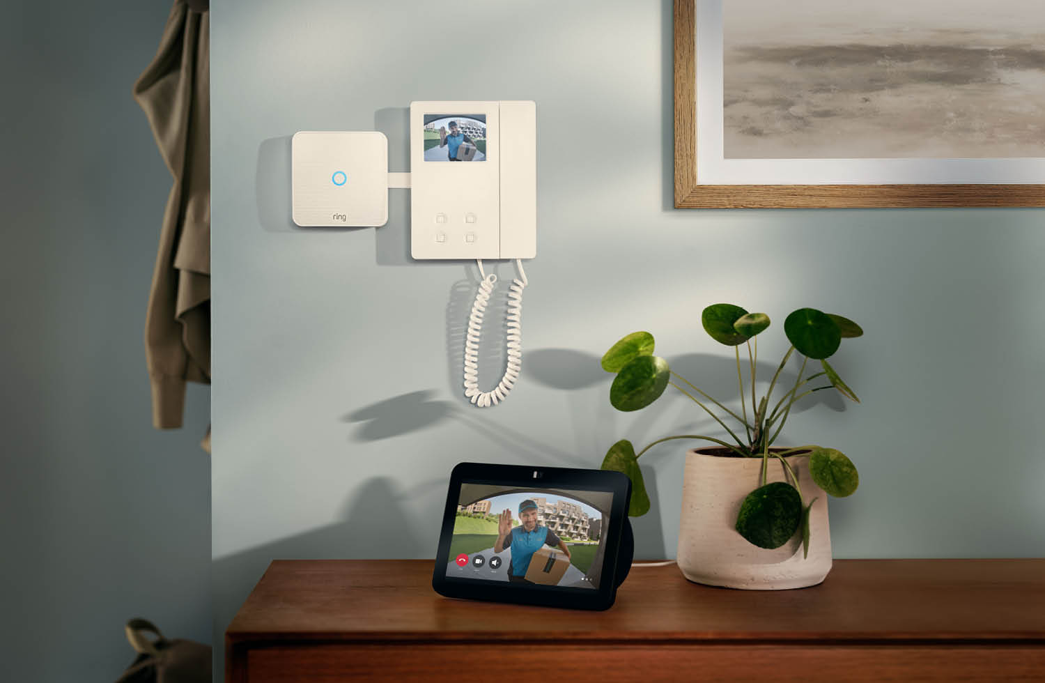 Mit dem Ring Intercom Video können Nutzer Besucher am Hauseingang live per Video sehen und direkt über die Ring-App oder ein Echo Show-Gerät mit ihnen sprechen. Auch das ferngesteuerte Öffnen der Haustür ist möglich, etwa um Freunden, Familienmitgliedern oder Lieferdiensten Zutritt zu gewähren.