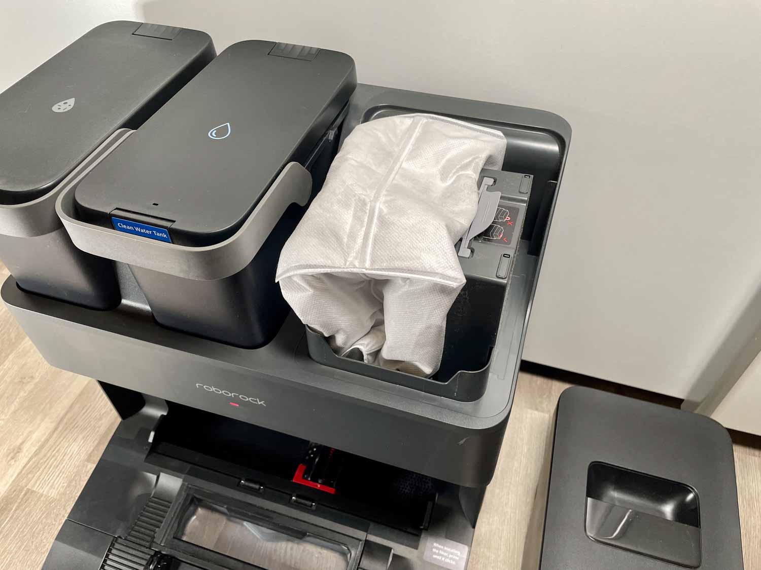- Überprüfe zunächst, ob der Staubbeutel oder der Staubtank (beim Roborock S7+) ordnungsgemäß eingesetzt wurde und der Deckel der Station richtig verschlossen ist. Wenn das nicht der Fall ist, wird deine Absaugstation erst gar nicht versuchen, den Schmutz abzusaugen.