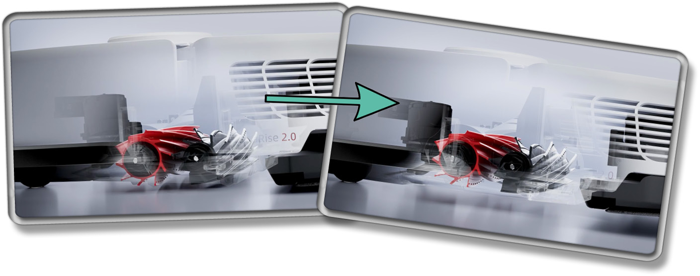 DuoRoller Riser kommt auch zum Einsatz, wenn der Roboter zurück zum RockDock, seiner Multifunktions-Reinigungsstation fährt. Die Bürsten werden dabei so weit in die Luft angehoben, dass keinerlei Kreuzkontamination zwischen verschmutzten Bürsten und frisch gewischtem Boden entstehen kann.