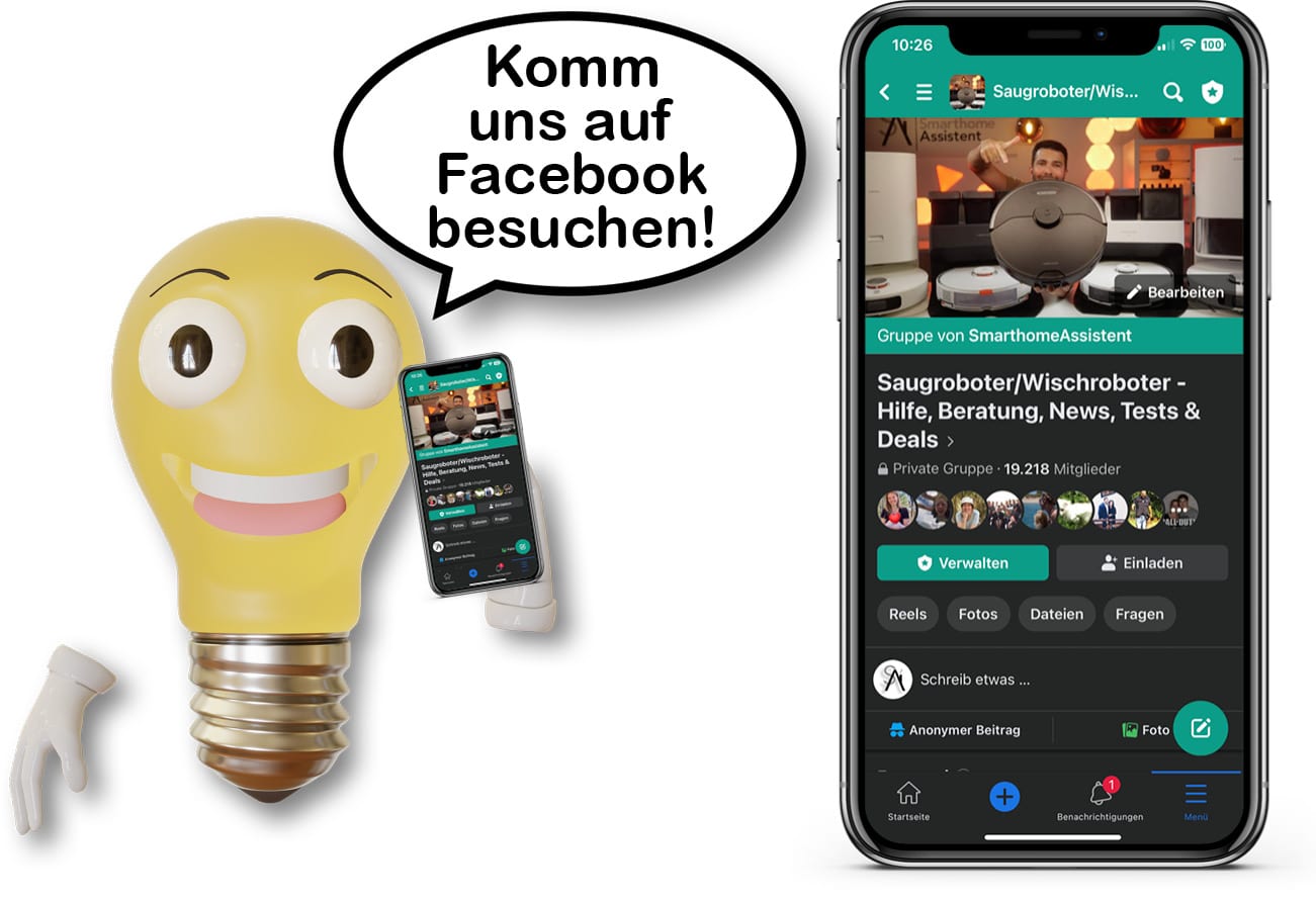 Du willst mehr über Saug- & Wischroboter wissen? Dann tritt doch unserer „Saug- & Wischroboter-Gruppe“ auf Facebook bei. Dort findest du eine riesige Community, mit der du dich zum Thema austauschen kannst! Falls du auf der Suche nach einem neuen Saugroboter bist, hilft dir unser Tool der Saugroboter Finder weiter!