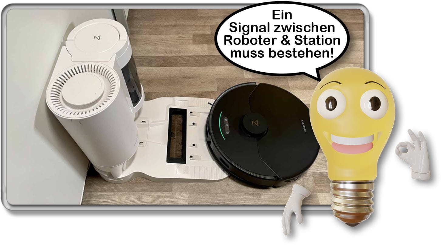 Wenn die vorherigen Punkte noch keine Besserung brachten, dann solltest du das Signal des Roboters zur Ladestation überprüfen. Stelle den Roboter etwa 50 cm vor der Ladestation ab und drücke die Home-Taste (Zurück zur Ladestation-Taste). Wenn der Roboter jetzt die Ladestation findet, dann weißt du, dass eine Verbindung besteht. Wenn er verzweifelt nach ihr sucht, dann hat er kein Signal mehr und die Ladestation wird defekt sein.