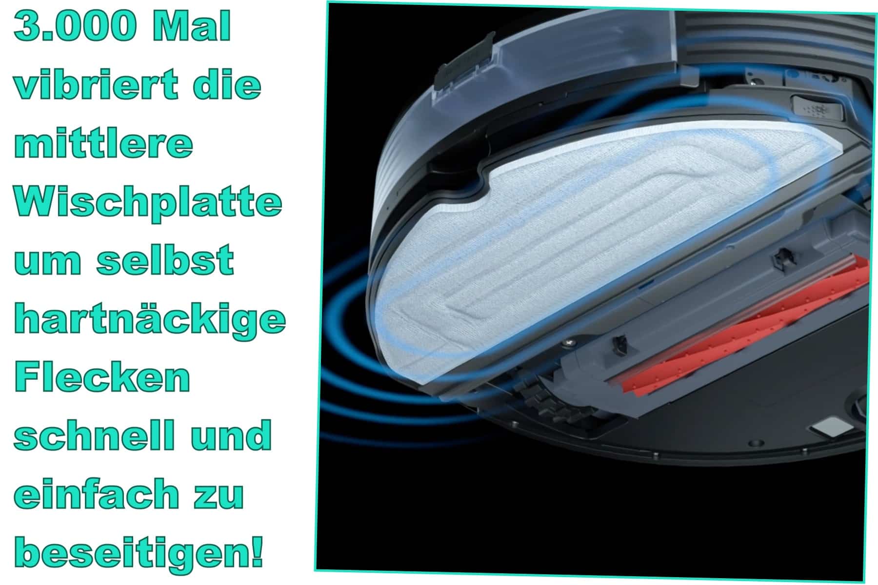 Der Vorteil an der VibraRise-Technologie besteht darin, dass die vibrierende Funktion nicht nur deutlich besser mit hartnäckigeren Flecken zurechtkommt, sondern auch deinen Teppichboden vor Nässe schützt. Das Wischbild ist zudem deutlich gleichmäßiger. Die Wischtücher sind bei den neuen Modellen sogar antibakteriell, damit sich keine Keime oder Viren auf den Tüchern bilden können. Das Problem mit den im Weg liegenden Teppichläufern ist ebenfalls Geschichte mit VibraRise. Wenn du etwa einen Läufer zwischen Flur und Küche besitzt, dann kann der Roboter trotz Wischfunktion dieses Hindernis überwinden und in beiden Bereichen Wischen. Das können viele andere Saug-Wischroboter nicht. Alles in allem ist das System, bei richtigem Einsatz, sogar in der Lage, das Wischen von Hand zu ersetzen.