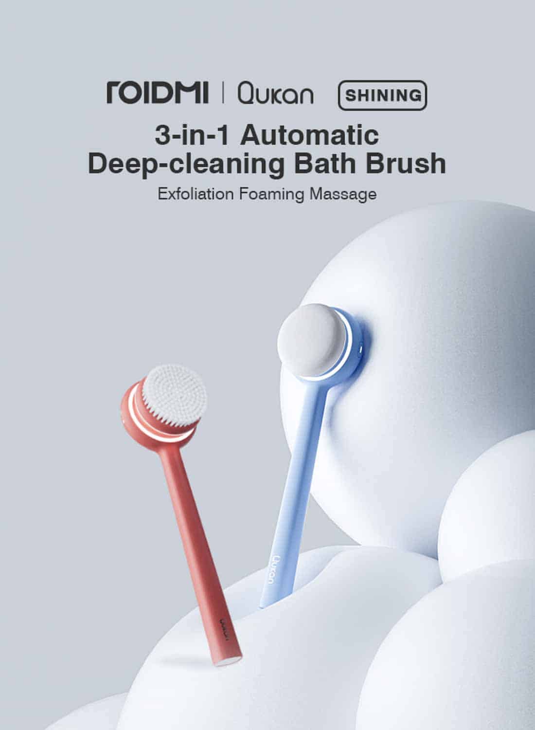 Die Duschbürste mit dem Namen Roidmi Qukan Shining soll mit verschiedenen Aufsätzen die Sauberkeit beim Duschen noch einmal verbessern. In der Crowdfunding Kampagne kann man erkennen, dass wir wohl alle keine anständige Körperpflege beim Duschen auf die Reihe bekommen. So wird die neue Duschbürste wohl unverzichtbar sein.