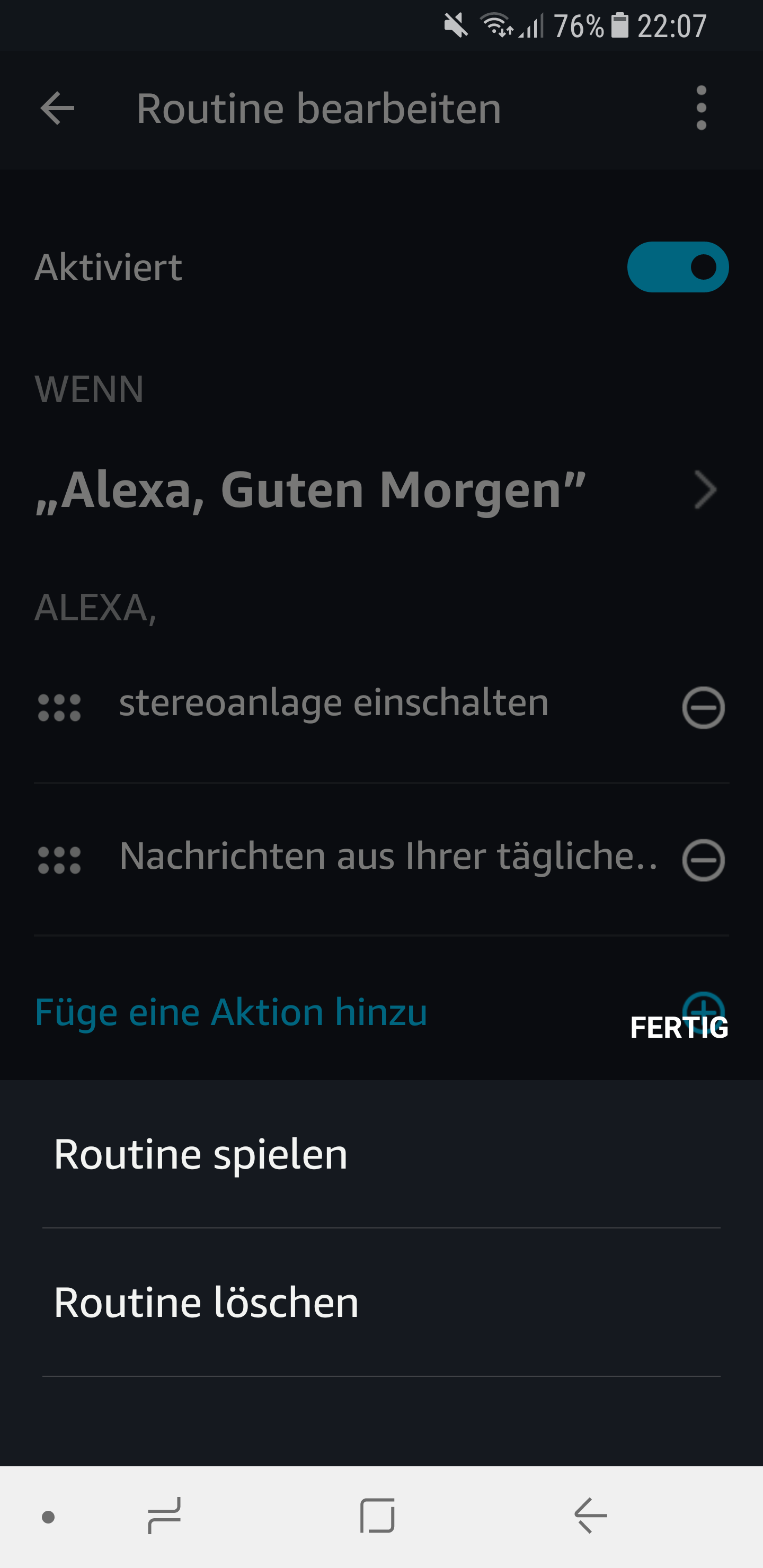 - An dieser Stelle seht ihr eure Routine noch einmal in der Übersicht. Ihr könnt auch im Nachhinein noch weitere Aktionen hinzufügen.