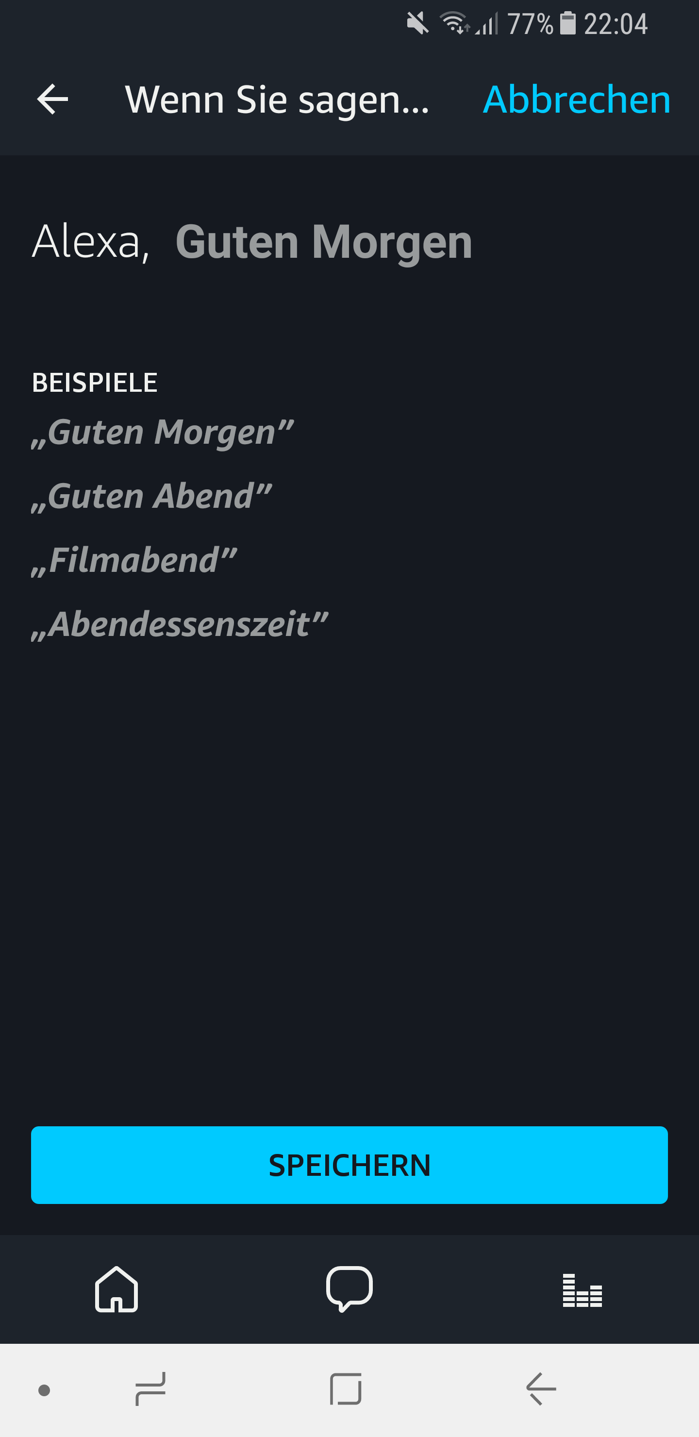 - In unserem Beispiel lege ich einen Sprachbefehl fest. Dieser lautet „Guten Morgen“ und wird dann gespeichert.