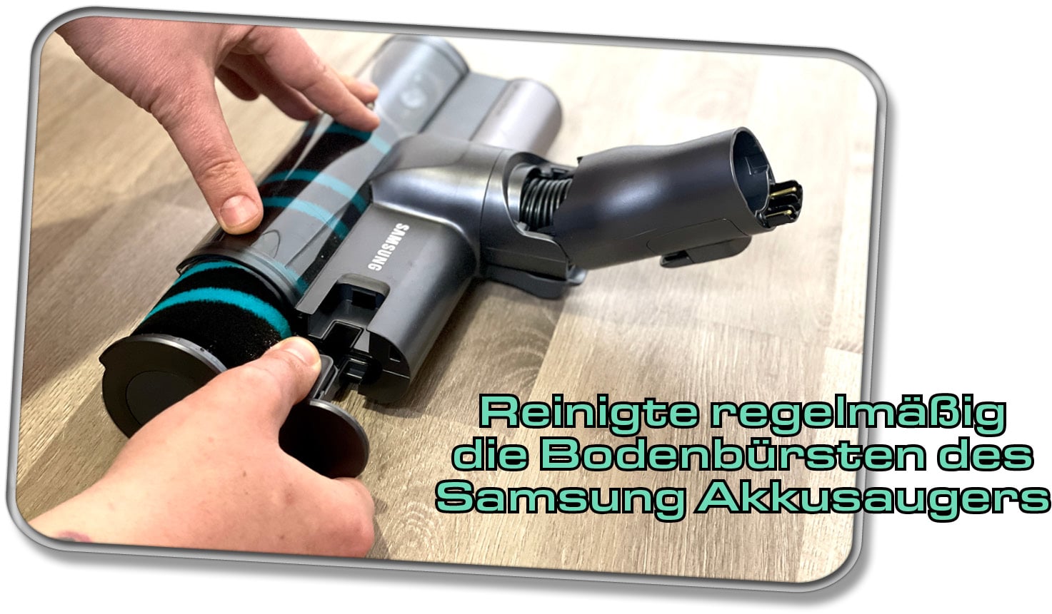 Jeder moderne Samsung Akkusauger ist mit einer motorisierten Bodenbürste ausgestattet. Diese kann sich mit der Zeit festsetzen mit Schmutz und primär Haaren. Ist diese zu sehr verschmutzt, kann sie während der Reinigung blockieren oder in ihrer Leistung beeinträchtigt sein. Somit solltest du immer darauf achten, dass du rechtzeitig die Bodenbürste von Schmutz befreist. Die Bodenbürsten sind einfach herauszunehmen und zu reinigen. Sie können nach Entfernung der Haare unter fließendem Wasser zusätzlich ausgewaschen werden. Bevor du sie jedoch wieder einsetzt, sollte diese komplett getrocknet sein.