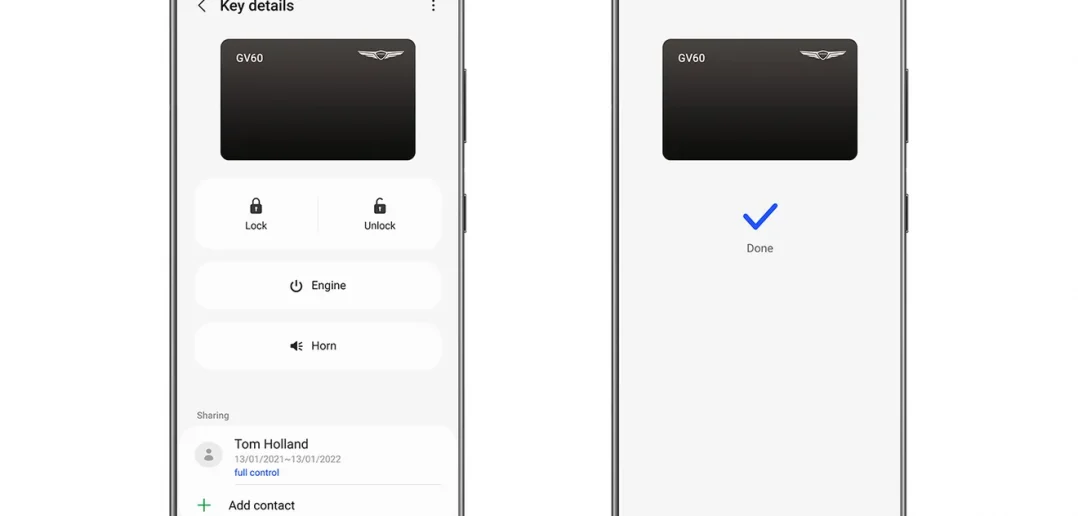 Galaxy-Nutzer können in Südkorea mit dem neu eingeführten Luxus-Elektroauto Genesis GV60 erstmals ihr Samsung Smartphone als digitalen Autoschlüssel verwenden. Mit dem Samsung Digital Key kann das Fahrzeug via NFC und Ultra-Wideband (UWB)-Technologie ver-, entriegelt uns gestartet werden. Außerdem kann der Schlüssel sicher mit Freunden und Familie geteilt werden.