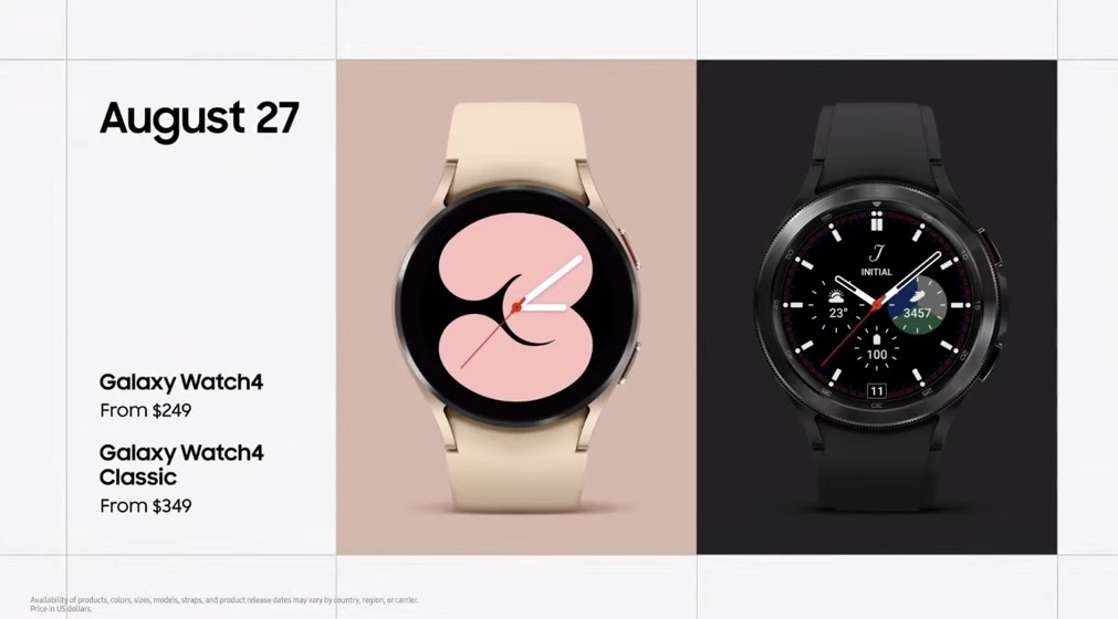 Die Samsung Galaxy Watch4 und Galaxy Watch4 Classic sollen ab dem 27. August in einer LTE und Bluetooth-Version verfügbar sein. Preislich startet das normale Modell bei $ 249 (ca. 250 €) und die Classic Variante bei $ 389 (ca.330 €).