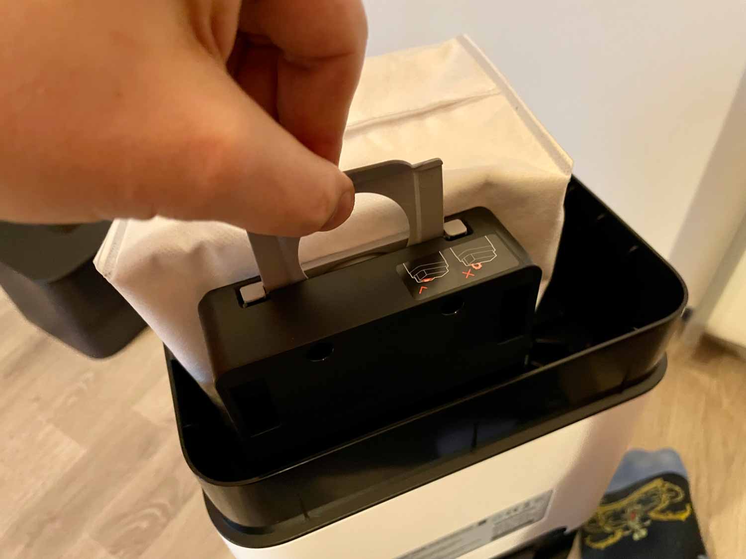 - Im Inneren befindet sich der Staubbeutel
