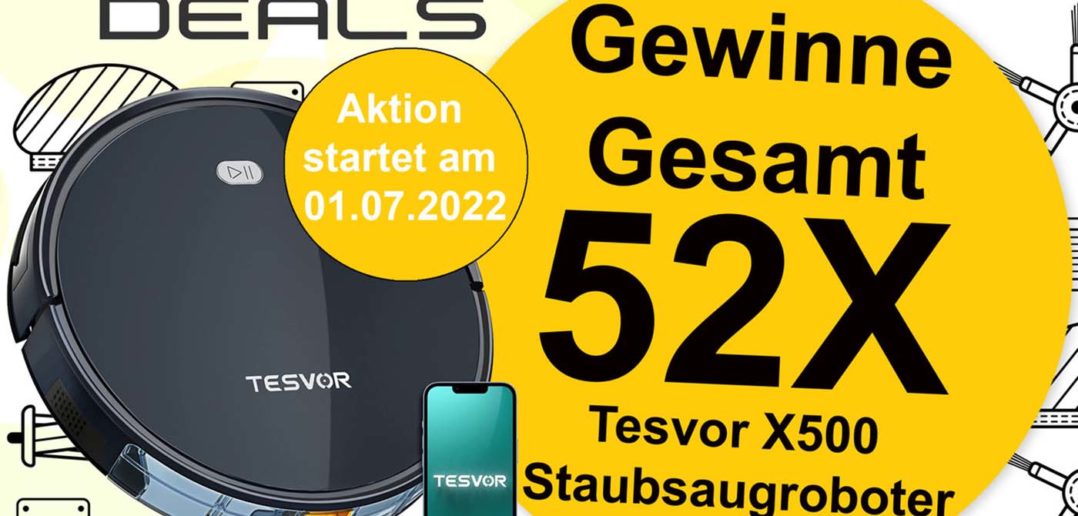 Heute startet das erste Gewinnspiel von Roboter-Deals, bei welchem ihr einen von 52 Tesvor X500 + Zubehörset gewinnen könnt. So geht es dann ein Jahr lang weiter, sodass ihr jede Woche eine neue Chance habt zu gewinnen!