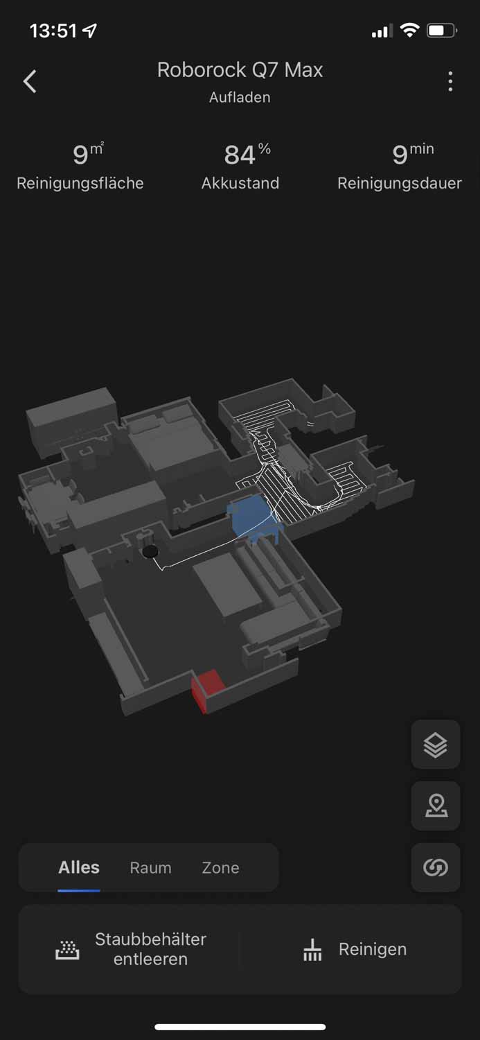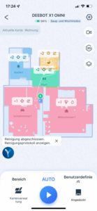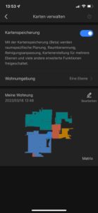 Nachdem der Roboter den kompletten Haushalt abgefahren hat, muss er eigenständig zu seiner Ladestation zurückfinden. Erst dann kann man die erstellte Karte speichern. Im Vorfeld sollte ebenso darauf geachtet werden, ob es in der App einen Punkt der Kartenspeicherung gibt. Dieser sollte natürlich vor jeder Kartierung aktiviert werden, ansonsten speichert der Roboter die erstellte Karte nicht dauerhaft.