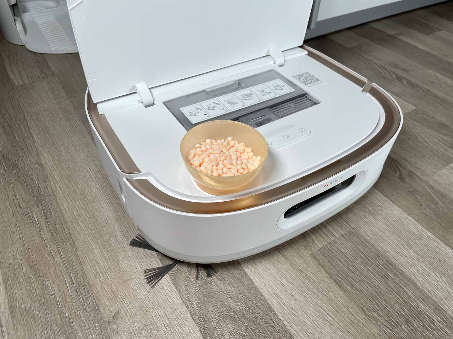 Einen winzigen Haken gibt es bei der Sache. Man sollte darauf achten, dass keine Flüssigkeit aufgesaugt wird und in den Staubbehälter gerät. Das kann schnell zu einem unangenehmen verkleben der Perlen führen. Um einen neuen Filter und einer Grundreinigung des Staubbehälters wirst du dann nicht mehr herumkommen. Jedoch ist es nicht üblich, dass ein Saug-Wischroboter über so viel Flüssigkeit fährt, dass diese in den Staubbehälter gesaugt wird. Ebenso ist es ein Fakt, dass du bei jedem Leeren des Staubbehälters ebenfalls die Wäscheperlen wegschütten musst. Hier empfiehlt sich ein tägliches Saugen, damit nicht so viel Schmutz anfällt, dass nach jeder Fahrt der Staubbehälter ausgeschüttet werden muss.