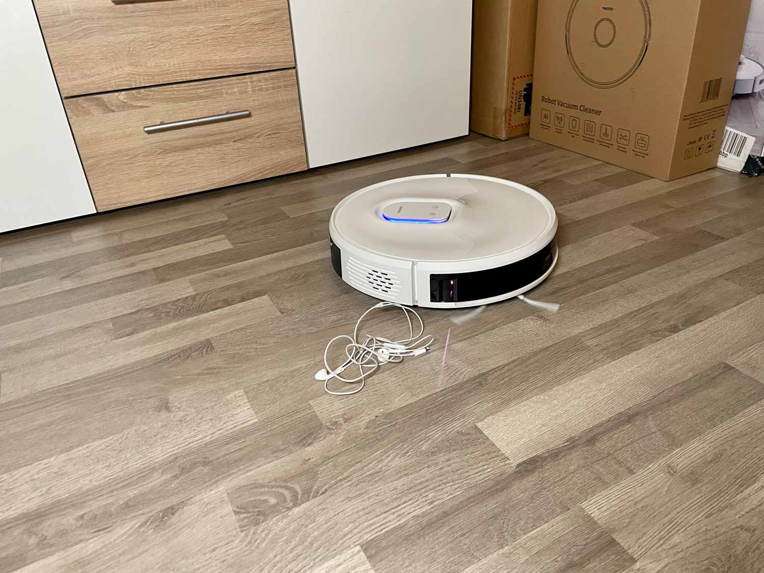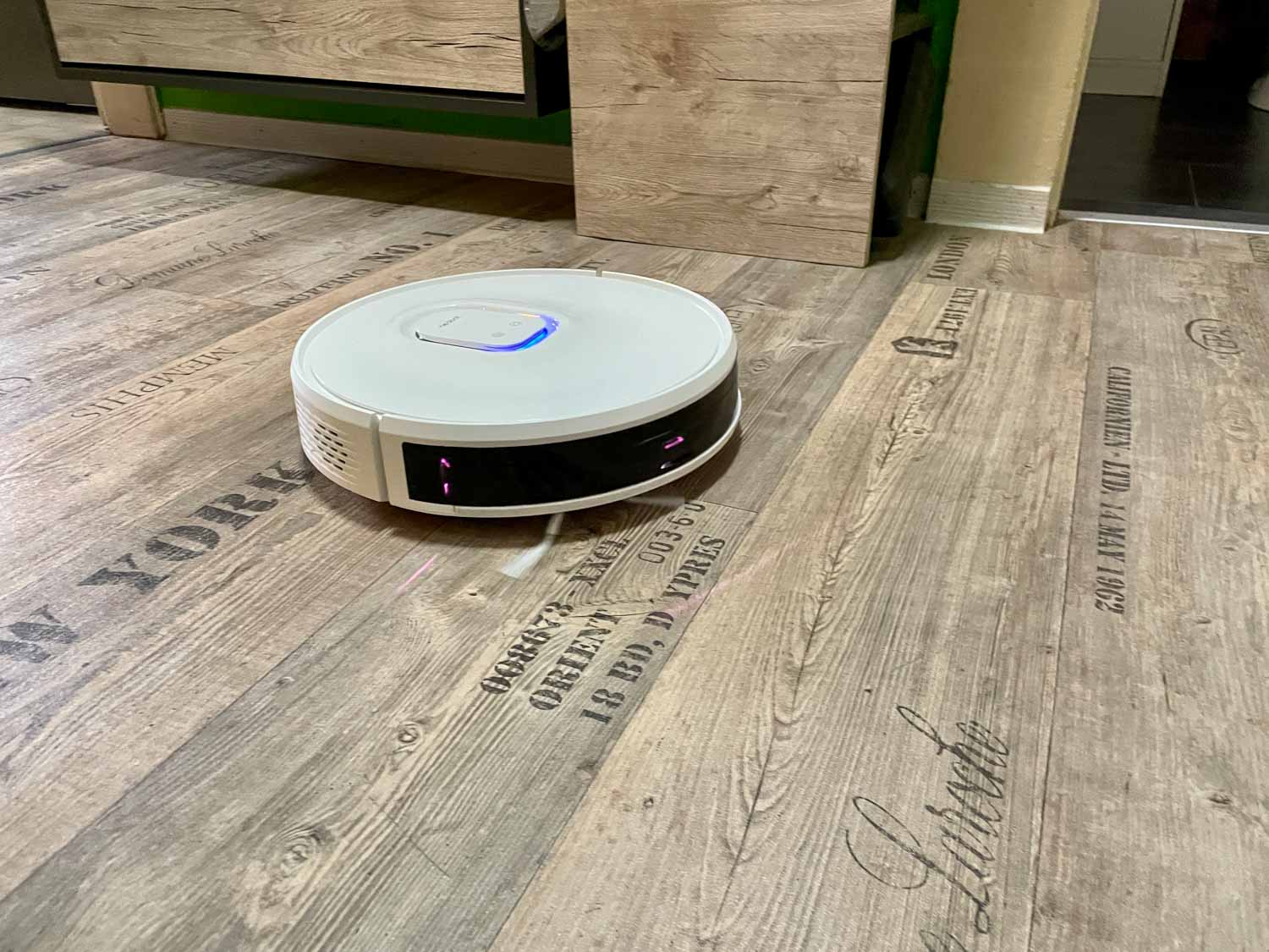 Ich bin ehrlich, ich war skeptisch! Ein Saug-Wischroboter mit Lasernavigation, die im Roboter verbaut wurde und nicht als bekannter Turm daherkommt, hat mich nichts Positives erahnen lassen. Was soll ich sagen? Der Roboter hat mich schon bei seiner ersten Fahrt regelrecht umgehauen. Der Roboter fährt zuerst den Randbereich des zu reinigenden Raumes ab und dann in Kerzengeraden Bahnen durch die Mitte. Eben genau so, wie ein Saug-Wischroboter mit Laserturm. Ich konnte tatsächlich kaum einen Unterschied zu so einem Roboter mit Turm in der Navigation feststellen.