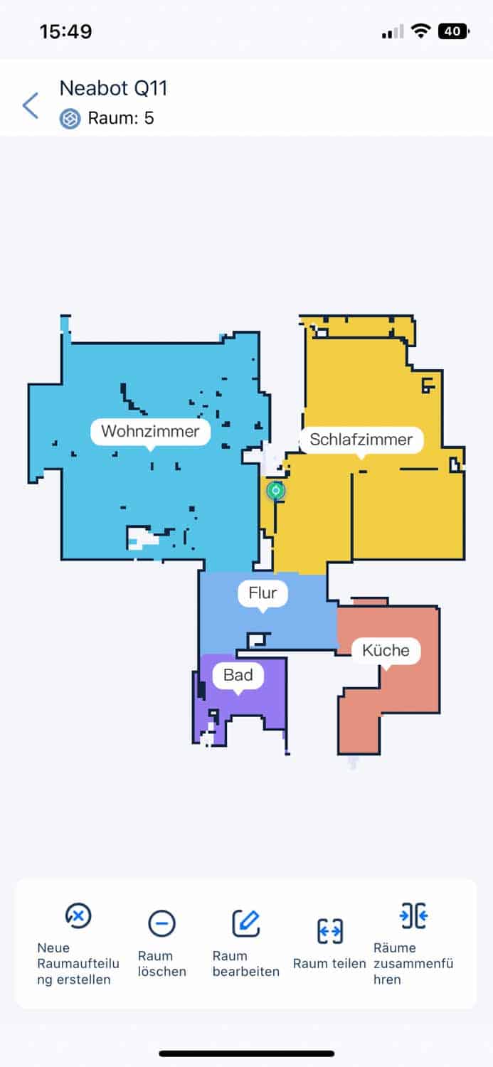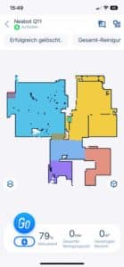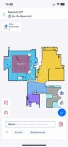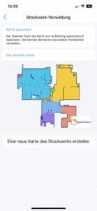 | Raumeinteilung | Der Roboter unterteilt die Karte in verschiedene Räume, die individuell angepasst werden können. |