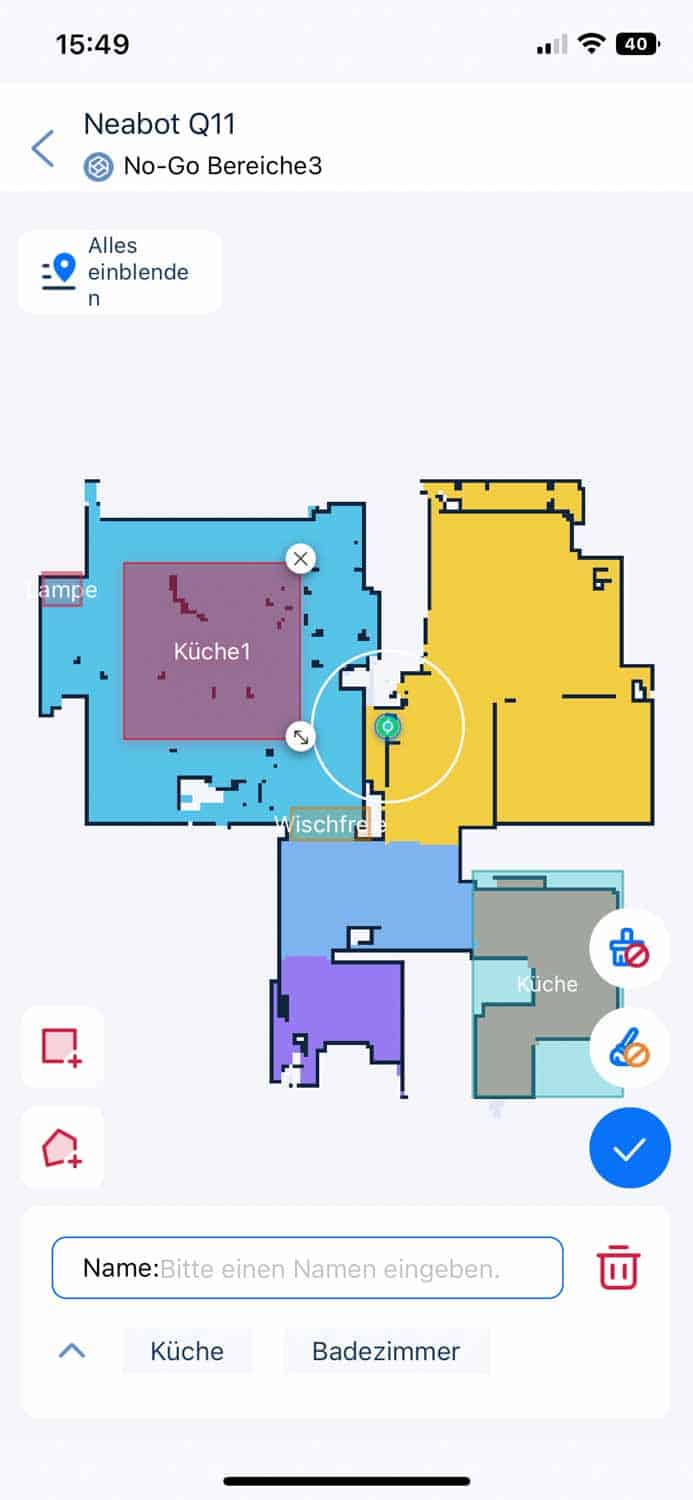 | Zonenreinigung | Auf der Karte lässt sich eine individuelle Zone einzeichnen, die dann gesäubert wird. |