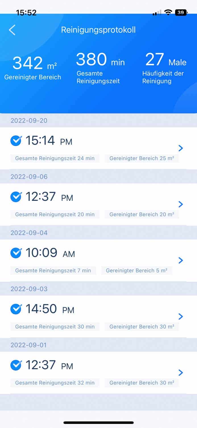 | Reinigungsprotokoll | Vergangene Reinigungen können kontrolliert werden. |