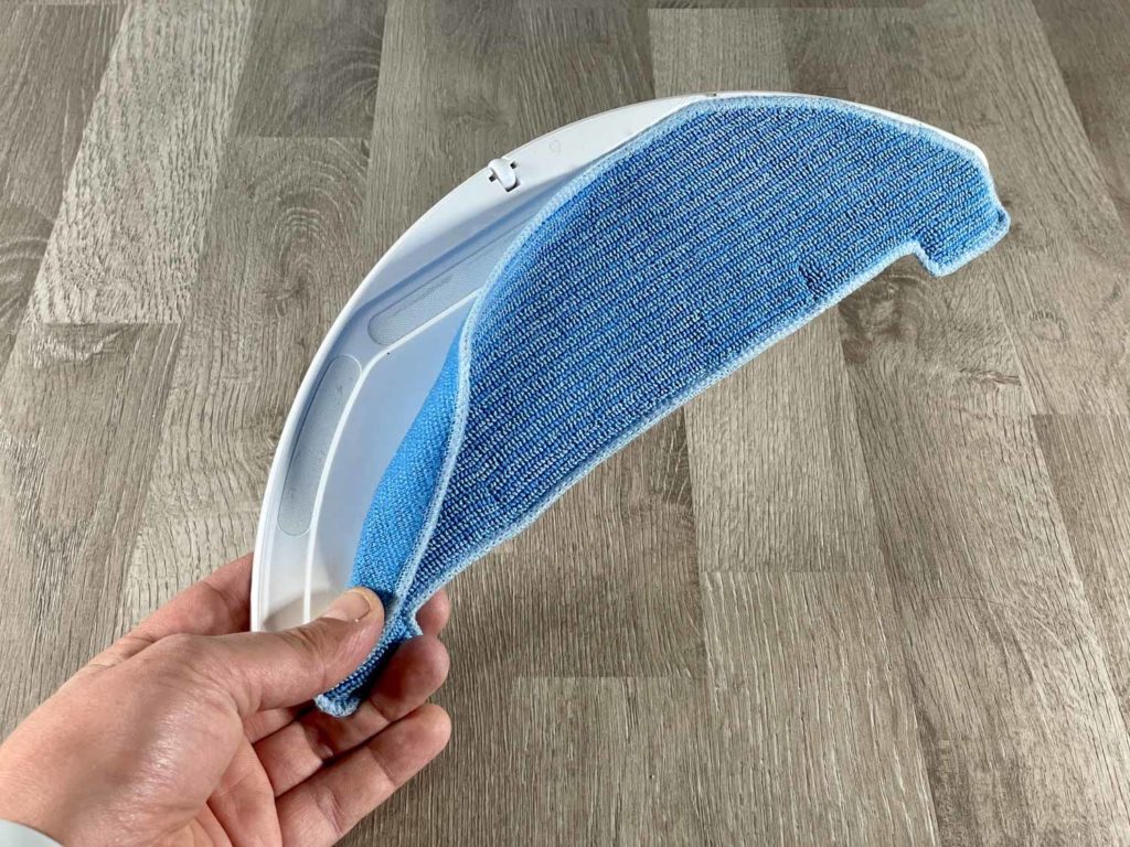 Die mitgelieferte Wischplatte kann man unter das Heck am Roboter befestigen. Durch den Kombitank fließt dann in individuell einstellbarer Menge das Wasser auf das Tuch. Somit handelt es sich bei der Wischfunktion um eine aktive, elektronisch gesteuerte Wischfunktion. Eine vibrierende oder oszillierende Funktion enthält sie jedoch nicht.