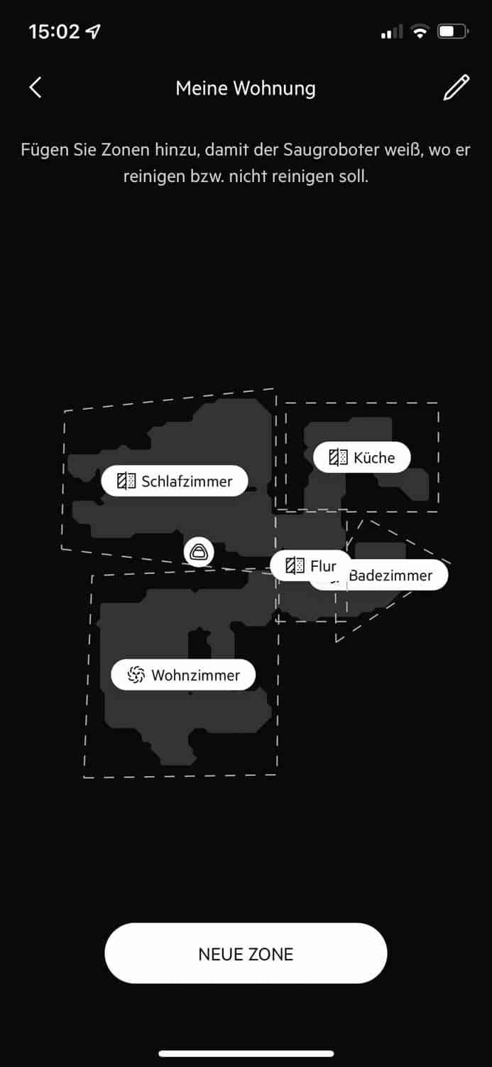 | Kartenerstellung | Nach der ersten Reinigung speichert sich der Roboter den Grundriss deines Haushaltes. |
