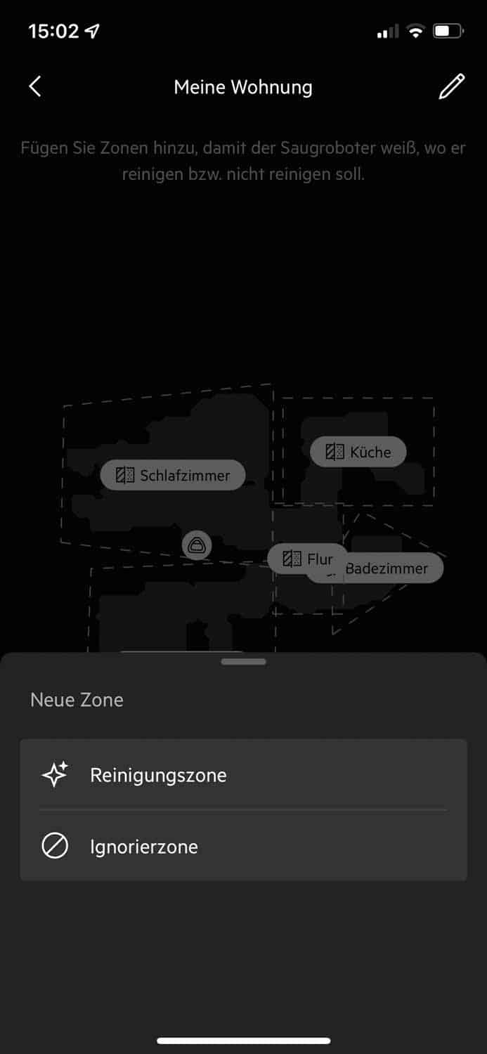 | Sperrzonen | Du kannst auf die gespeicherte Karte individuelle Sperrzonen errichten, die der Roboter beim Reinigen meiden soll. |