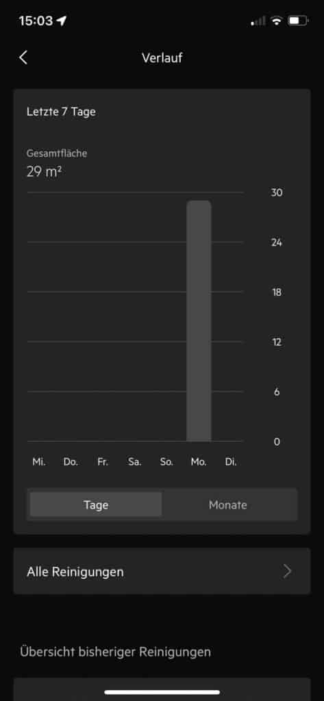 | Reinigungsverlauf | Der Reinigungsverlauf vergangener Reinigungen ist einsehbar. |