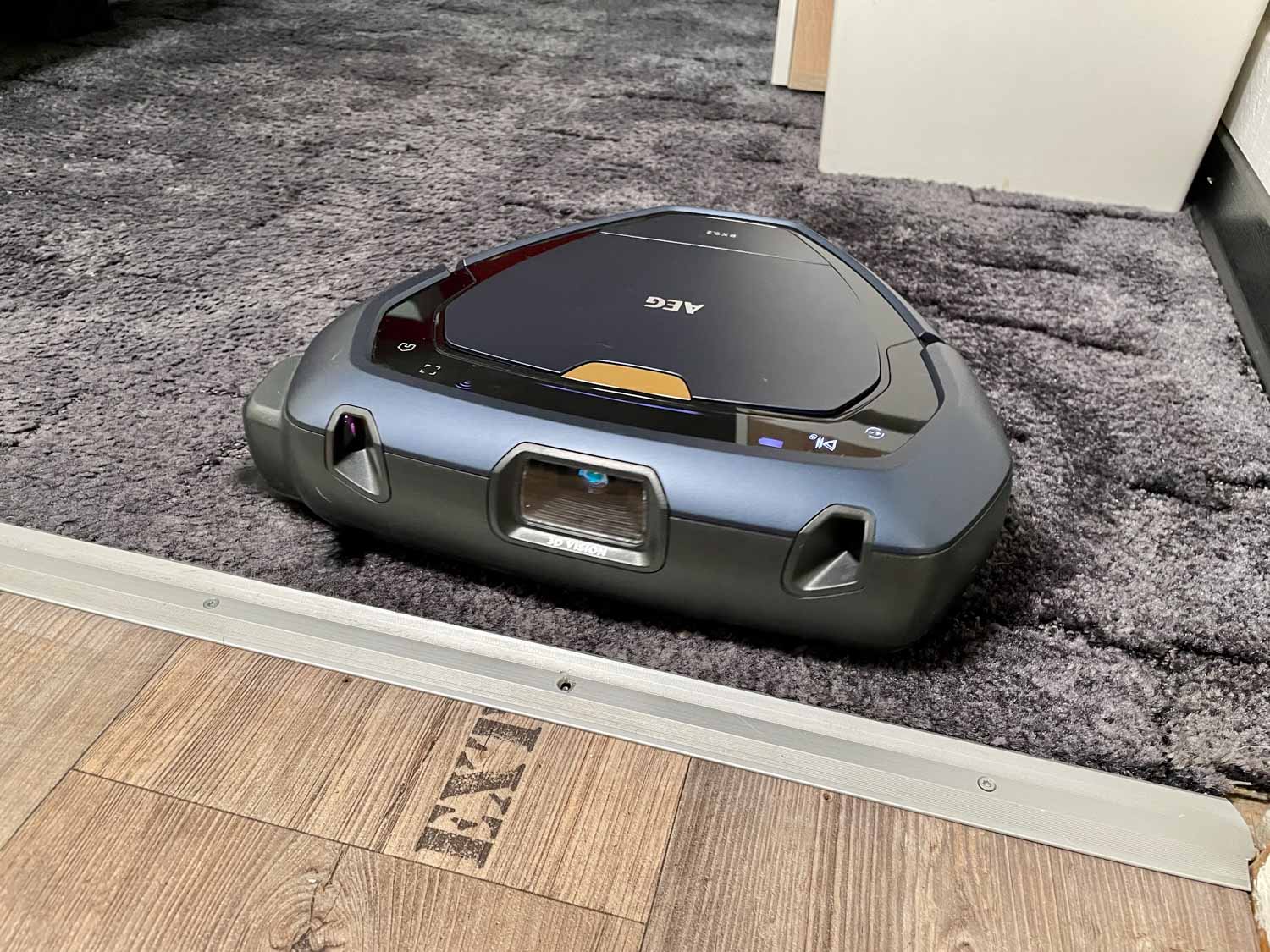 Wichtig beim Kauf eines Saugroboters ist es, dass man sich im Vorfeld informiert, was für eine Art an Navigation der Roboter besitzt. Der AEG RX9.2 besitzt eine Mischung aus Tof-Sensor (Time of Flight) und einer Lasernavigation. Diese erkennst du anhand der Kamera und der Kreuzlaser in der Front. Dadurch spart sich der Hersteller den aufgesetzten Laserturm, der das Gerät nur in die Höhe schießen lässt. Jedoch sollte dir ebenfalls bewusst sein, dass diese Art der Navigation eine Lasernavigation mittels Laserturm nicht ersetzen kann. Der Roboter nutzt eher die Kamera, in Verbindung mit den Kreuzlasern, als Navigationshilfe.