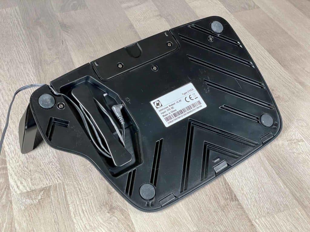 Der AEG RX9.2 ist nicht das einzige mitgelieferte Gerät, das ein außergewöhnliches Design besitzt. Ebenso ist die Ladestation augenscheinlich aus einer anderen Zeit und relativ groß bemessen. Versprich dir jedoch nicht zu viel von ihr, denn diese ladet lediglich den Roboter mit Strom wieder auf. Eine Absaugfunktion besitzt diese nicht. Dafür erkennst du schnell auf der Unterseite ein Kabelmanagement und eine Kabelführung, die unnötigen Kabelsalat bei dir Zuhause eliminiert. Zudem findet der Roboter immer zuverlässig zu dieser zurück. Es gab in meinem Test nicht ein einzigen Augenblick, an dem der Roboter bei einem Andockversuch scheiterte.