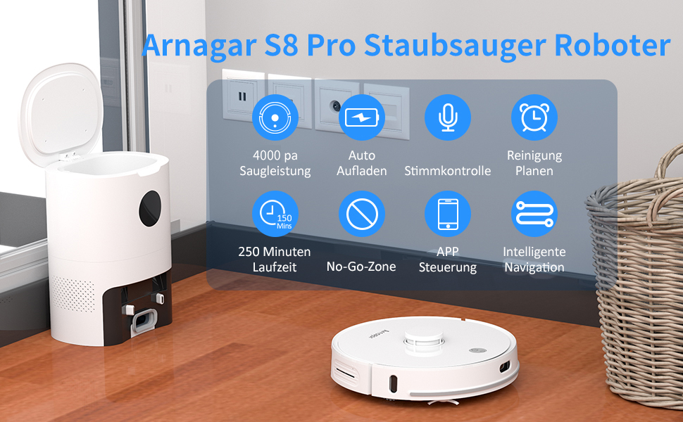 Arnagar S8 Pro – Saug-Wischroboter mit Absaugstation