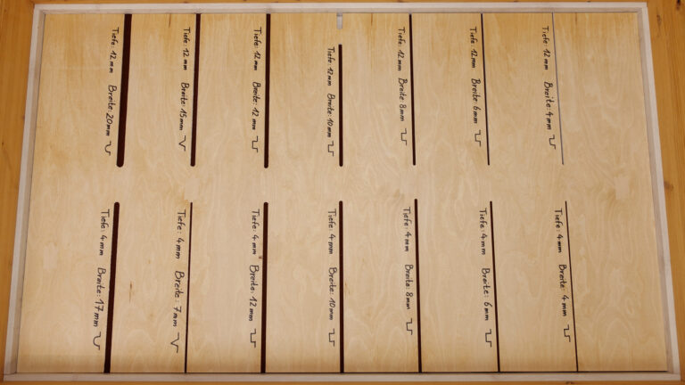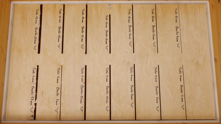 Als zusätzliche Herausforderung für die Saugroboter haben wir einen neuen Fugentest entwickelt. Dazu haben wir Fugen unterschiedlicher Form, Breite und Tiefe in ein Brett gefräst. Damit simulieren wir tiefe Ritzen, etwa im Dielenboden einer Altbauwohnung. Die neue Aufgabe offenbart sich als echter Härtetest für die Geräte, die das Kaffeepulver aus den Fugen saugen sollen.