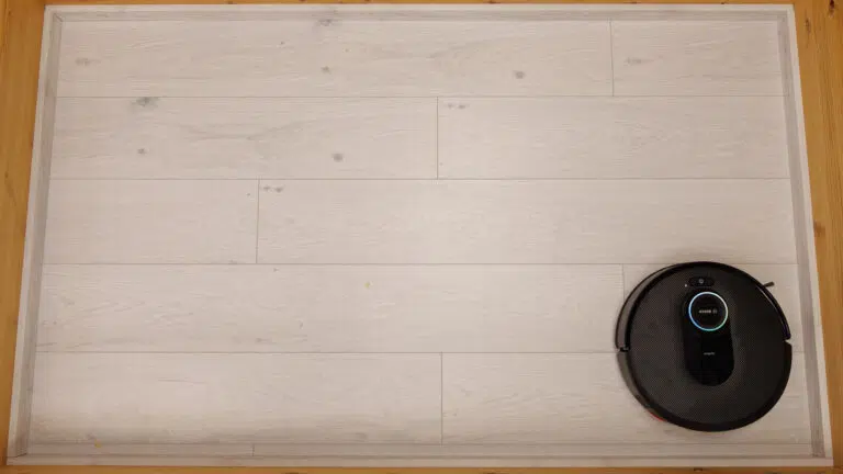 Für die 25 Quadratmeter Fläche und die zahlreichen Aufgaben benötigt der Spotless Max Cam in unserem Test insgesamt nur 45 Minuten und verbraucht nur 17 % seiner Akkuladung. Das sind hervorragende Werte.