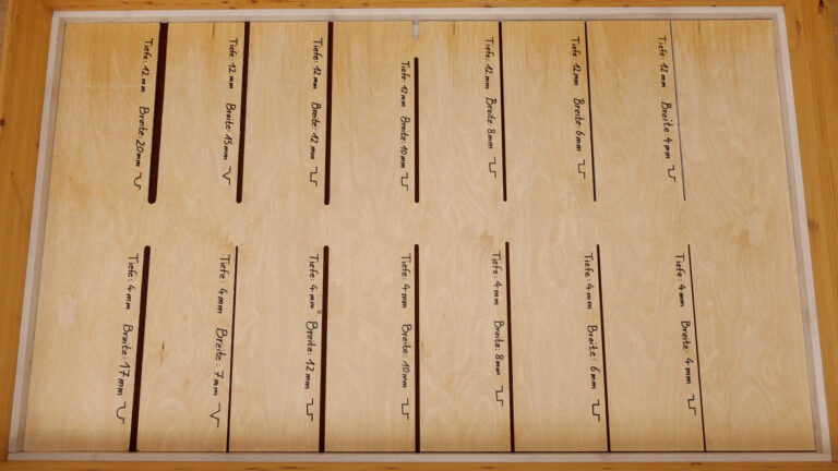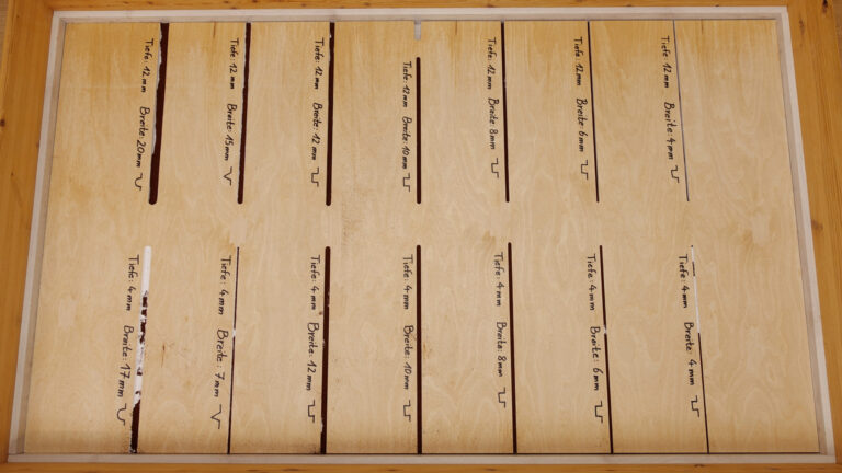 Als zusätzliche Herausforderung für die Saugroboter haben wir einen neuen Fugentest entwickelt. Dazu haben wir Fugen unterschiedlicher Form, Breite und Tiefe in ein Brett gefräst. Damit simulieren wir tiefe Fugen, etwa im Dielenboden einer Altbauwohnung. Die neue Aufgabe offenbart sich als echter Härtetest für die Geräte, die das Kaffeepulver aus den Fugen saugen sollen.