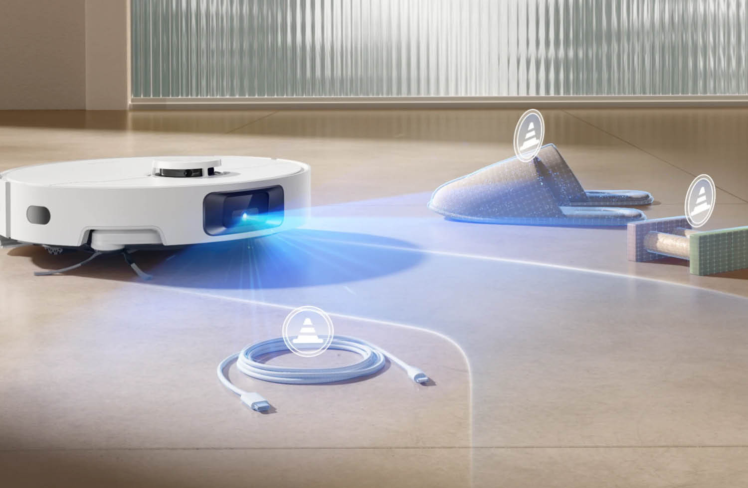 Ausgestattet ist der Dreame-Saugroboter mit einem 3D-Strukturlicht und der Laserdistanz-Navigationsart. Somit erstellt der Roboter präzise Karten und erkennt Hindernisse. Spielzeuge oder Ladekabel sollen dadurch sicher umfahren werden. In der App lassen sich zudem Sperrzonen hinzufügen und Reinigungsbereiche festlegen.