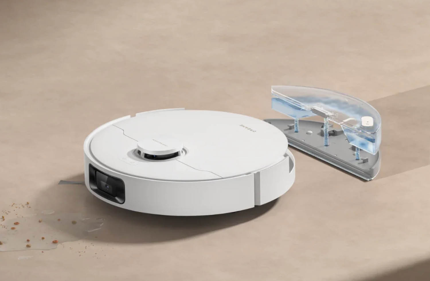 Neben dem Saugen kann der Dreame D20 Pro Plus auch noch wischen. Das ist durch ein Wischerpad möglich. Der 350 ml vormontierte Wasserbehälter muss dafür manuell mit Wasser befüllt werden. Dabei gibt es die Möglichkeit, zwischen 32 Feuchtigkeitsstufen zu wählen, was ideal für Parkett oder Laminat ist.