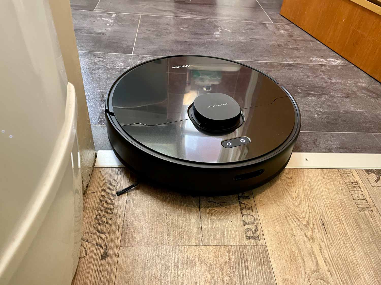 Anfänglich fährt der Dreame D9 Max im Test den Rand des zu reinigenden Raumes ab und widmet sich dann der Mitte in geraden Bahnfahrten. Dabei habe ich im Test festgestellt, dass man nur die Saugleistung hören kann und kaum mal die Räder. Diese sind bei diesem Gerät angenehm leise. Nach individuell eingestellter zweifachen Reinigungsfahrt fährt er ein Schachbrettmuster ab, das die Reinigung intensiviert. Bei seiner zweiten Fahrt in einer zweifachen Reinigung reinigt er übrigens nicht noch einmal den Randbereich, was ihn zeitlich verschnellert, das Reinigungsergebnis jedoch verschlechtert. Beeindruckend war, egal, wohin ich ihn gestellt habe, er konnte sich überall positionieren und hat nach Hause gefunden.