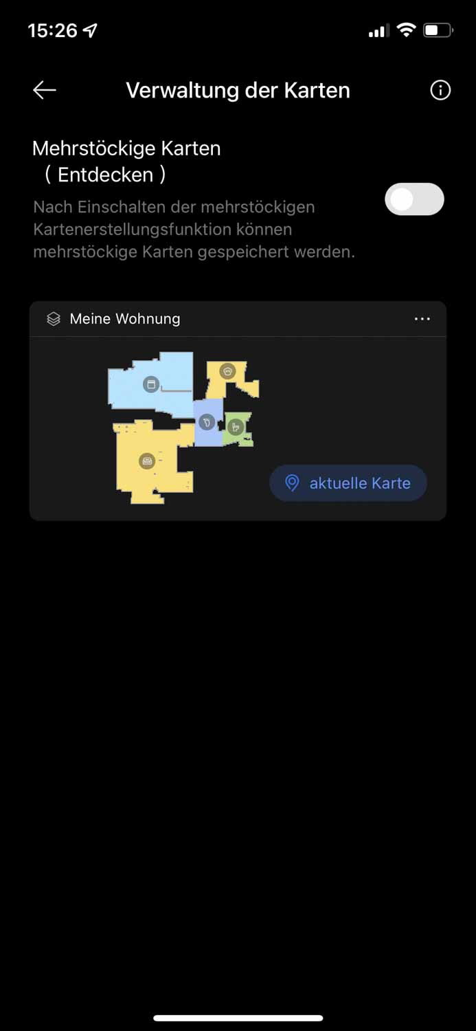 Das Erstellen eines Zeitplans ist eine tolle Funktion, die es erlaubt, den Roboter zu einer individuell ausgewählten Uhrzeit zu starten. Dabei kann man auswählen, ob der Roboter alles oder nur bestimmte Räume reinigen soll, um wie viel Uhr er das tun soll und an welchen Tagen die Reinigung stattfinden soll. Die Saug- und Wischleistung ist davor einzustellen, kann jedoch nicht für einzelne Räume anders aufgestellt werden.