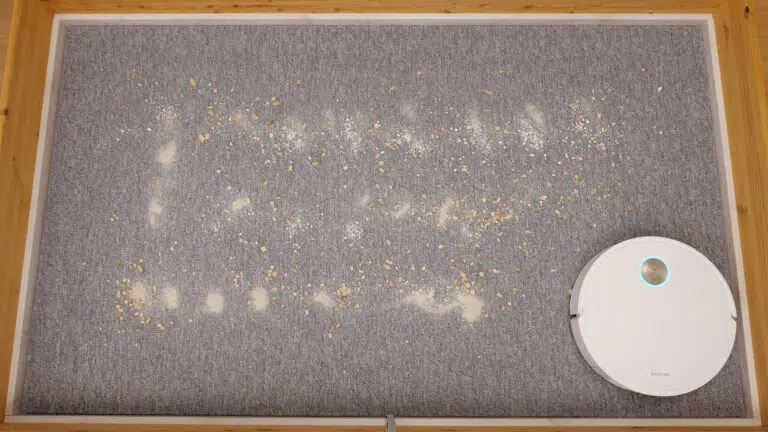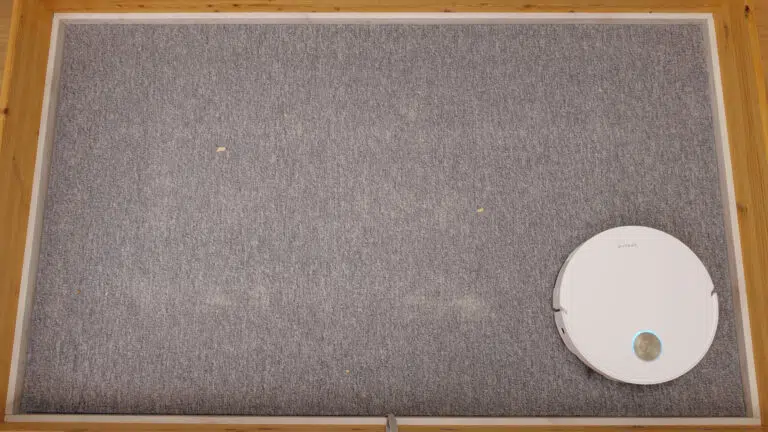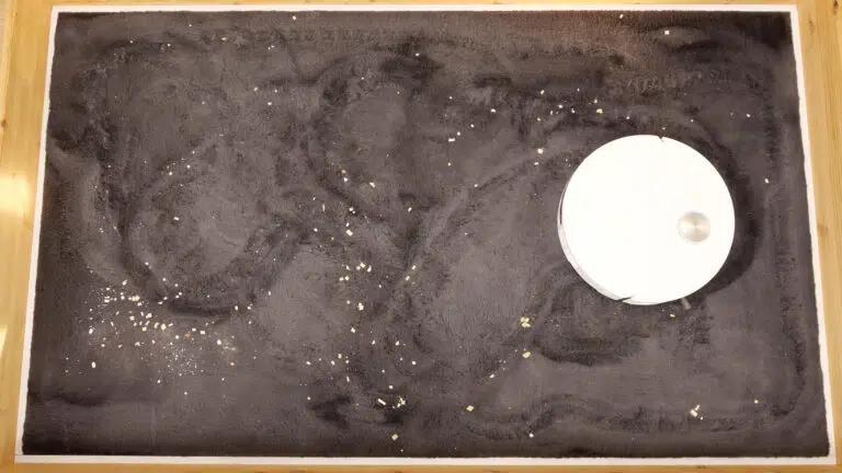 Auf Teppich mit kurzen Fasern war das Ergebnis in unserem ersten Durchlauf 77,71 g von 100 g. Ein zweiter Durchlauf brachte etwas über 82 g, der Wert für die Bewertung bleibt aber der erste Durchlauf. Zusätzlich fiel uns die Navigation auf Teppichen als noch nicht ausgereift auf.