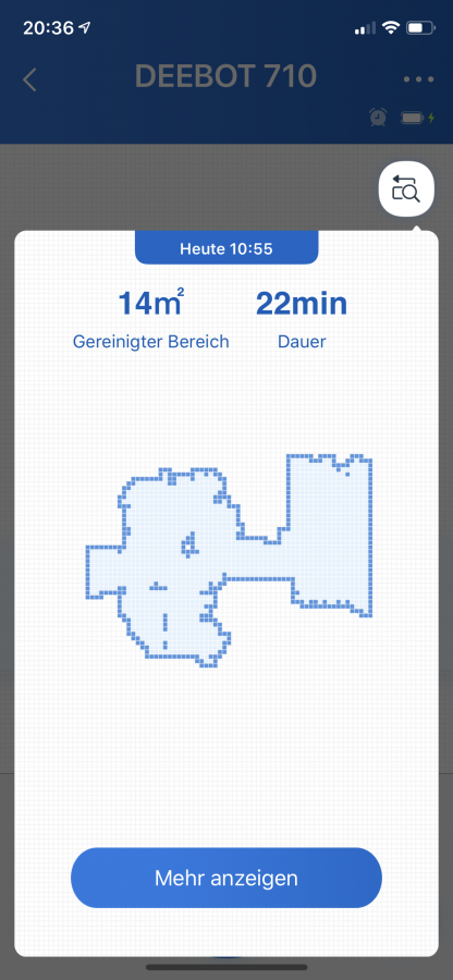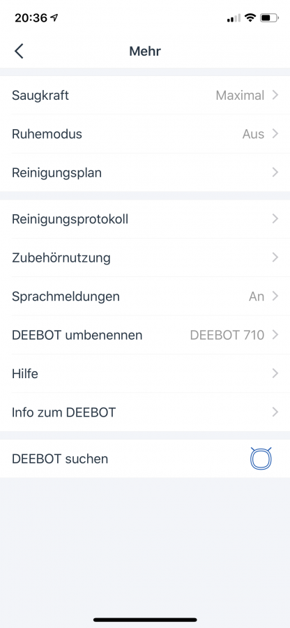 Der DEEBOT 710 hat eine intuitive Appsteuerung mit an Bord. Die App nennt sich ECOVACS Home und ist sehr leicht verständlich. Die Einbindung geht, dank einer ausführlichen Anleitung bei Inbetriebnahme, kinderleicht. In dieser kann man die Dinge steuern, die auch über die Fernbedienung steuerbar sind. Zusätzlich lässt sich dort auch eine automatische Zeitsteuerung einstellen, die Saugkraft erhöhen, einen Reinigungsplan inklusive erstellter Karte einsehen, die Aussprache auf Deutsch einstellen und noch ein paar weitere Dinge managen.