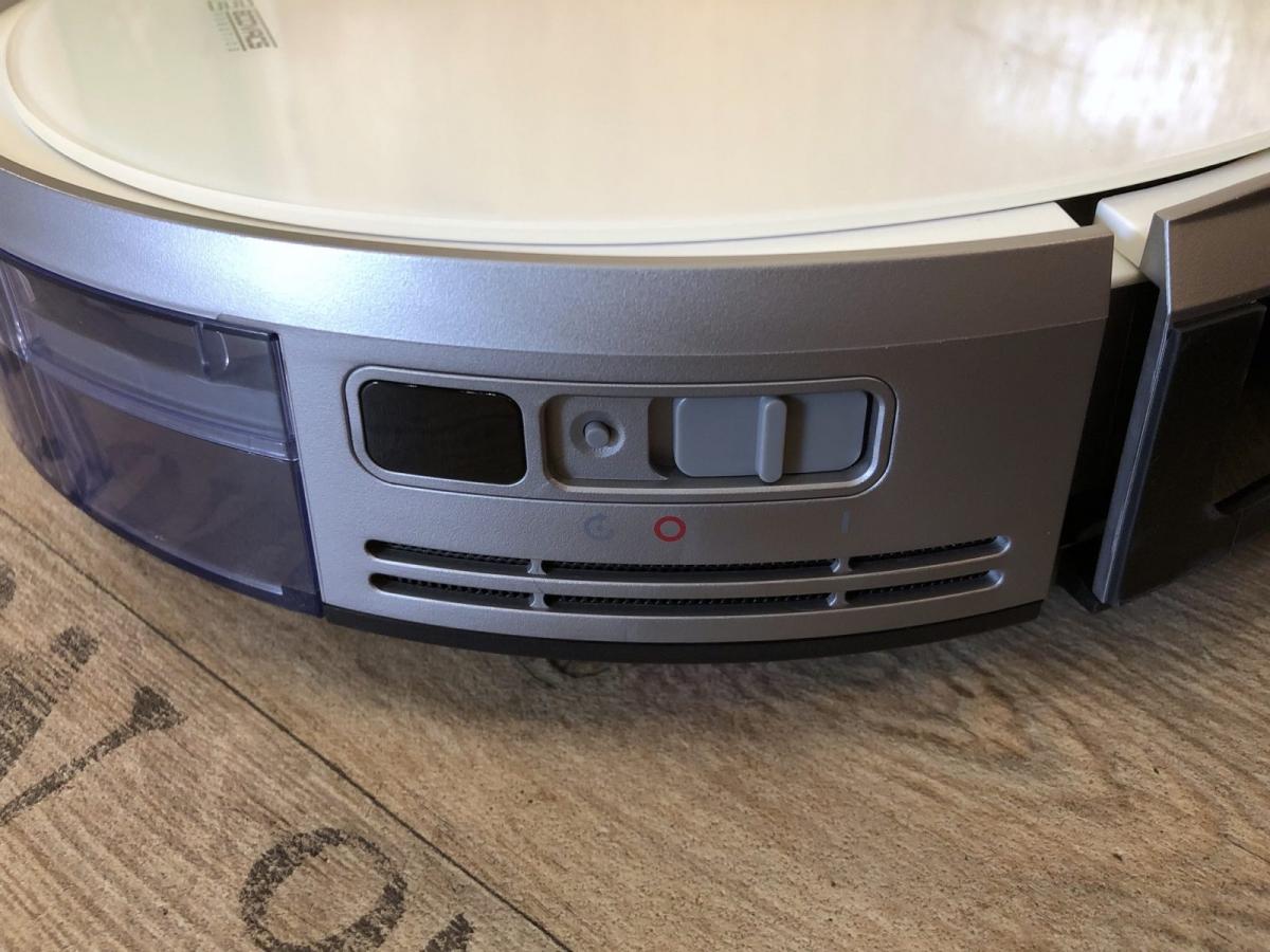 Der im Durchmesser 32,5 cm breite DEEBOT 710 verfügt über nur einen Knopf auf der Oberseite, der für den Start der Reinigung und das Pausieren dieser gedacht ist. Mit längerem Druck darauf steuert er seine Ladestation an. Direkt daneben verbirgt sich die Kamera, die dem DEEBOT 710 erlaubt, intelligent zu navigieren. Außerdem findet man eine kleine, leuchtende WLAN-Anzeige.