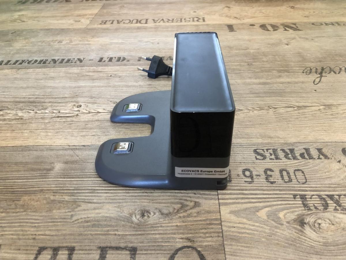 Die mitgelieferte Ladestation ist baugleich mit der des DEEBOT OZMO 900 oder auch des DEEBOT OZMO 930. Diese sind sogar untereinander austauschbar. Das heißt, ich konnte im Test den DEEBOT 710 über die Ladestation des DEEBOT OZMO 930 und des DEEBOT OZMO 900 aufladen. Nach der Reinigung fährt der DEEBOT 710 diese sogar an, wenn seine eigene Station nicht auffindbar ist. Vom Design her ist sie in einem schlichten Grau gehalten und verfügt über eine praktische Kabelaufwicklung auf der Rückseite. Das wirkt zukünftigen Kabelsalat entgegen. Das Netzkabel mit Eurostecker ist in dieser integriert.