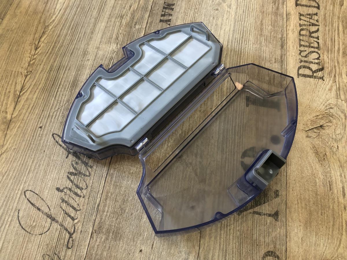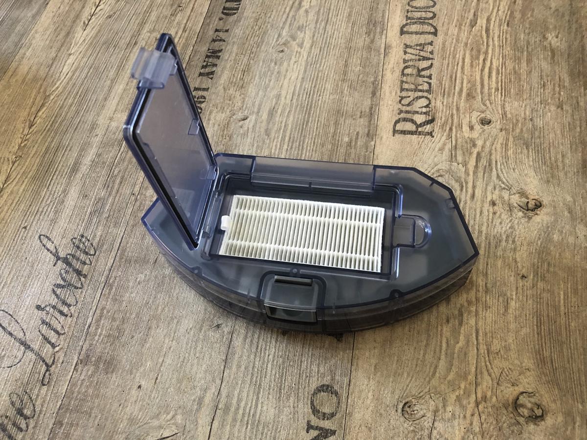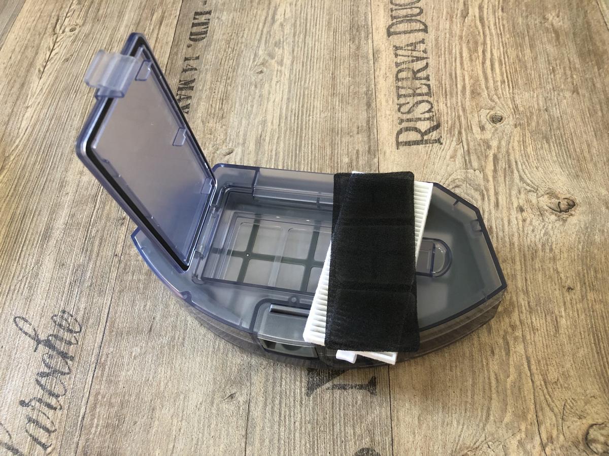 Der in transparentem Blau gehaltene Staubbehälter verfügt über ein 520 ml großes Volumen und ist somit ausreichend bemessen. Er ist am Heck des Saugroboters herausnehmbar und hat eine großzügige Einsaugöffnung.