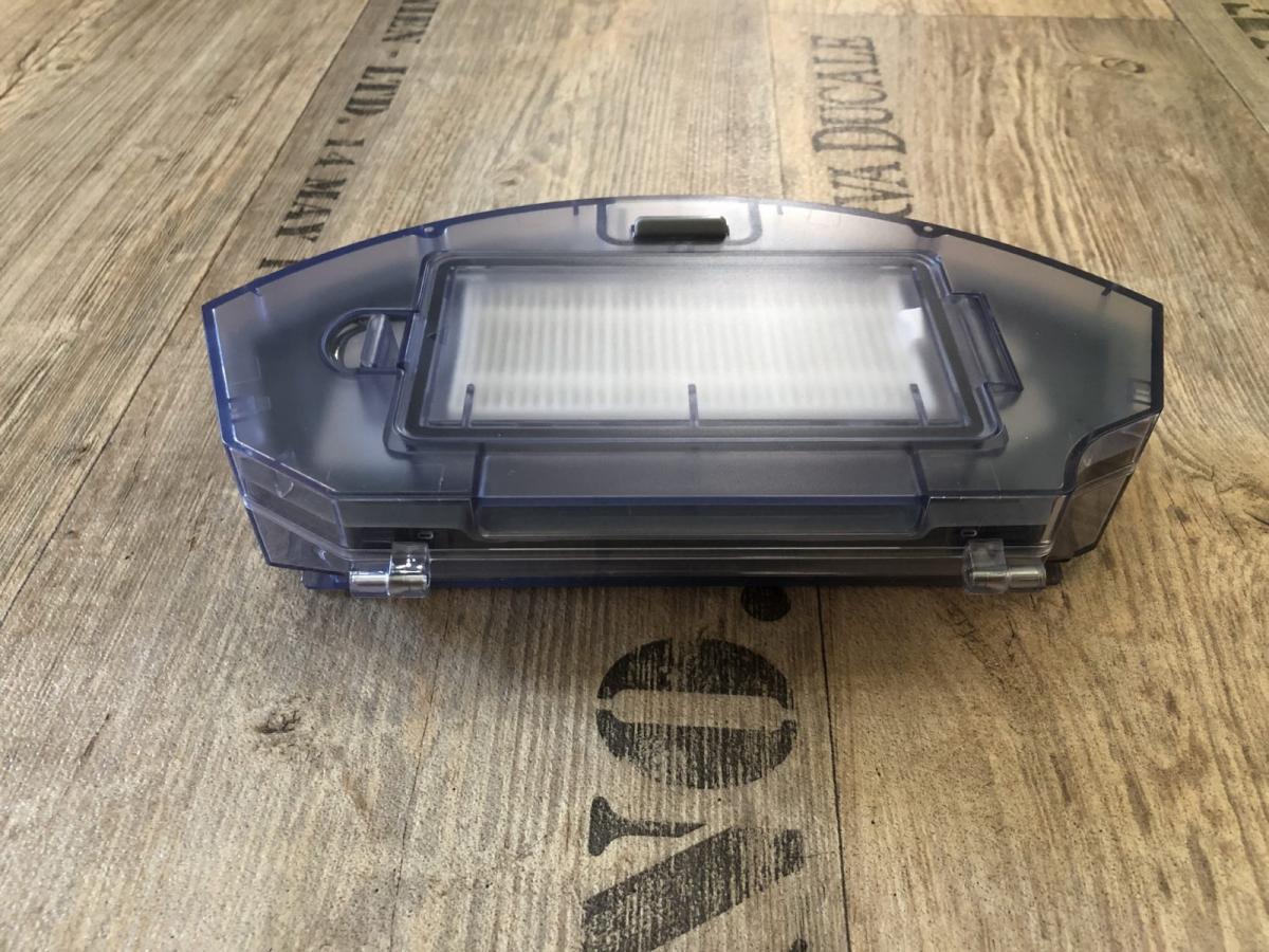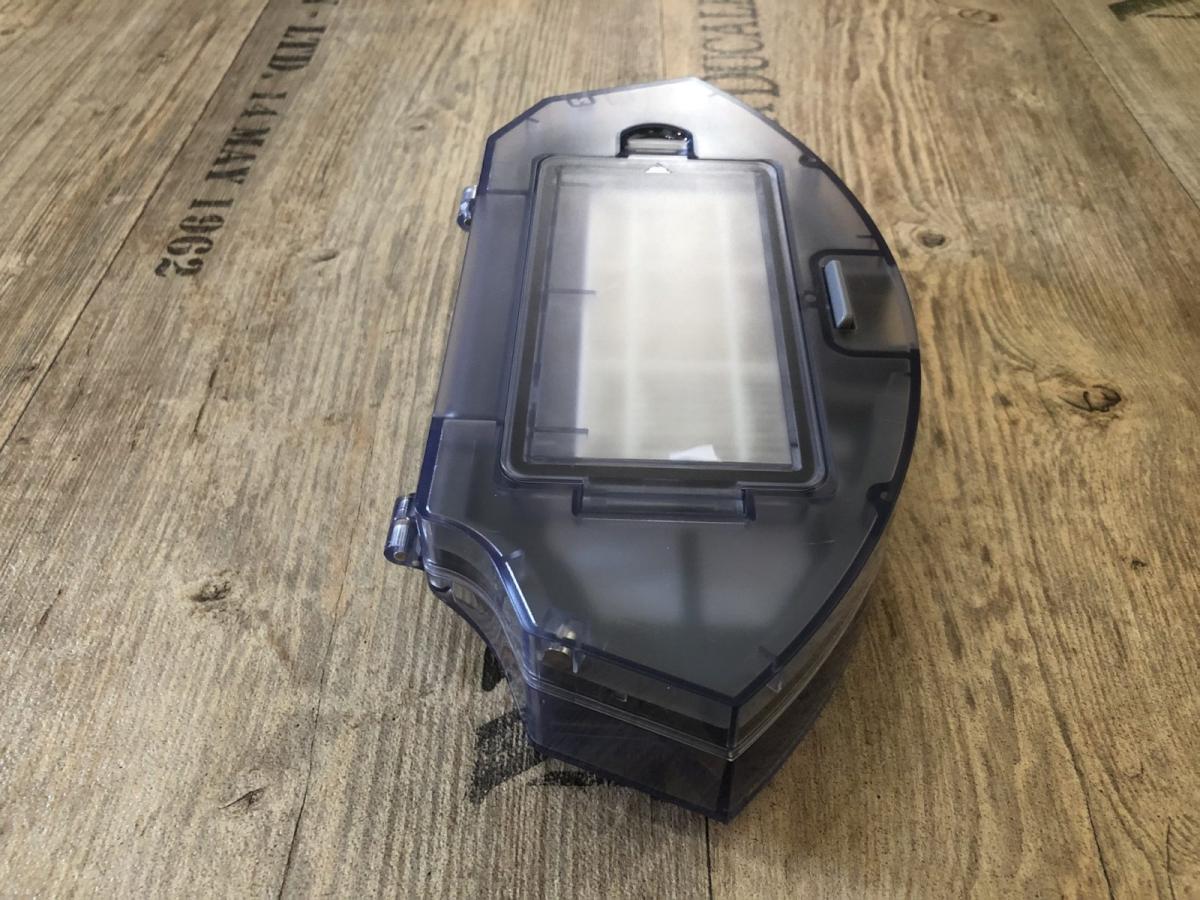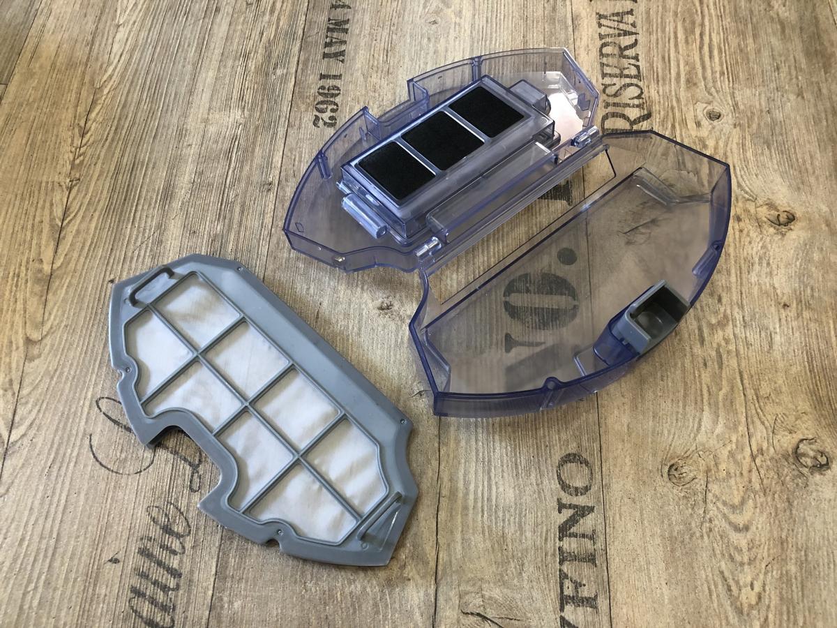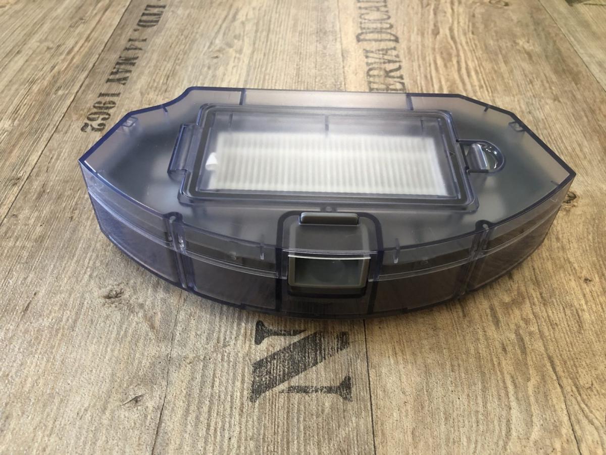 Der in transparentem Blau gehaltene Staubbehälter verfügt über ein 520 ml großes Volumen und ist somit ausreichend bemessen. Er ist am Heck des Saugroboters herausnehmbar und hat eine großzügige Einsaugöffnung.