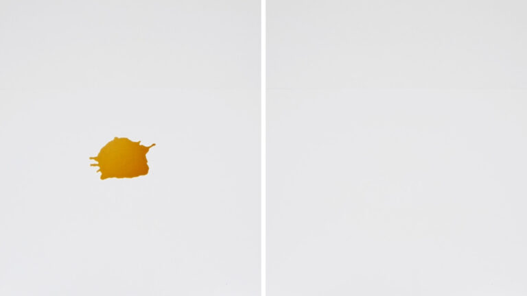 Neben dem Saugen ist die Wischwalze ein Highlight des DEEBOT T90 PRO OMNI, die für eine gründliche Reinigung des Haushalts sorgen soll. Wir testen das Wischsystem mit hartnäckigen Flecken aus angetrockneten Matschschuhabdrücken, Kaffee- und Ketchupflecken. Außerdem überprüfen wir mit Kreidestiften die Reinigung in Randnähe und auf strukturiertem Boden.