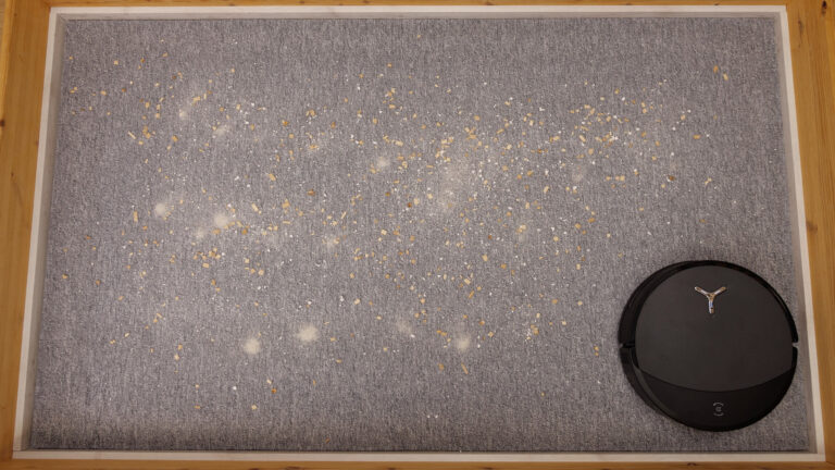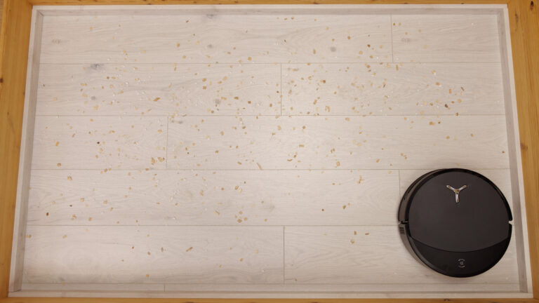 Im Test zeigt sich, dass der ECOVACS DEEBOT T90 PRO OMNI aus der 4 mm tiefen und 17 mm breiten Fuge noch am meisten herausholen kann. Aus den weiteren Rillen entfernt der Saugroboter nur vereinzelt den Dreck. Hier offenbart das Gerät noch viel Luft nach oben und ist damit in unserem neuen Härtesttest in bester Gesellschaft.