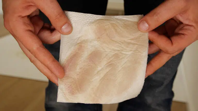 Um zu sehen, wie gut der Schmutz wirklich aufgenommen wurde, wischen wir mit einem feuchten Tuch nach. Hier punkten die Wischwalzen mit reinlicheren Ergebnissen gegenüber den Modellen mit rotierenden Wischmopps. Der ECOVACS DEEBOT X11 OmniCyclone kommt allerdings nicht an die Reinigungsergebnisse eines Mova Z60 Ultra Roller oder des Dreame Aqua10 Ultra Track heran. Auf dem Tuch sind noch deutliche Rückstände zu sehen.