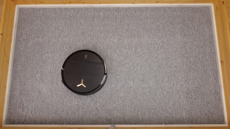 Was uns direkt im Saugtest auf dem Areal aufgefallen ist, ist die Tatsache, dass der ECOVACS DEEBOT X9 PRO OMNI das Testareal gleich zweimal im Schachbrettmuster abfährt. Das bedeutet, er fährt insgesamt viermal den Randbereich und zweimal die Mitte horizontal und zweimal vertikal ab. Das führt natürlich zu einer langen Reinigungsdauer, aber auch zu einem hervorragenden Ergebnis von 99,18 g, die er wieder aufsaugen konnte.