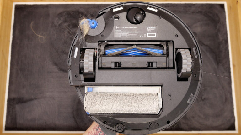 Wie man deutlich erkennen kann, hat er auf beiden Bodenarten jedes Haar entfernen können. Erfreulicherweise hat sich auch kein einziges Haar um eine Komponente des ECOVACS DEEBOT X9 PRO OMNI gewickelt. Nicht einmal Schnitthaare waren mehr vorhanden. So können wir sagen, dass der Saugroboter eine exzellente Anti-Haaraufwicklung besitzt.