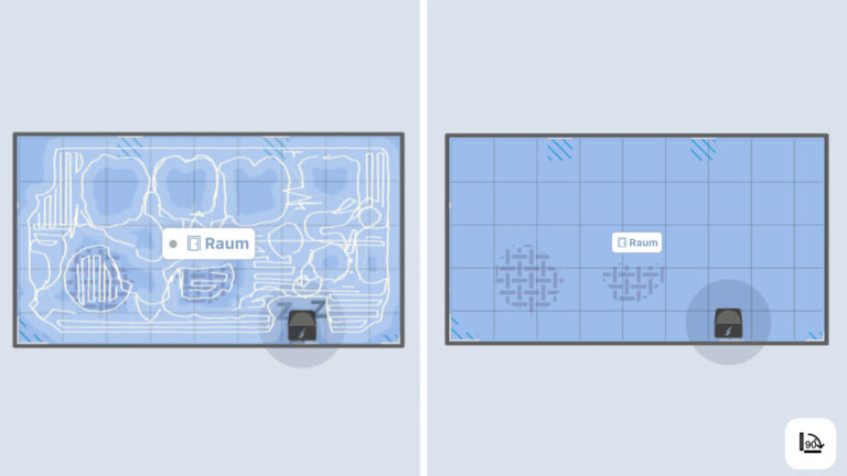 | Kartenerstellung | Durch ein kurzes Umschauen oder durch seine erste Reinigungsfahrt fertigt der Saugroboter eine detaillierte Raumkarte an. |