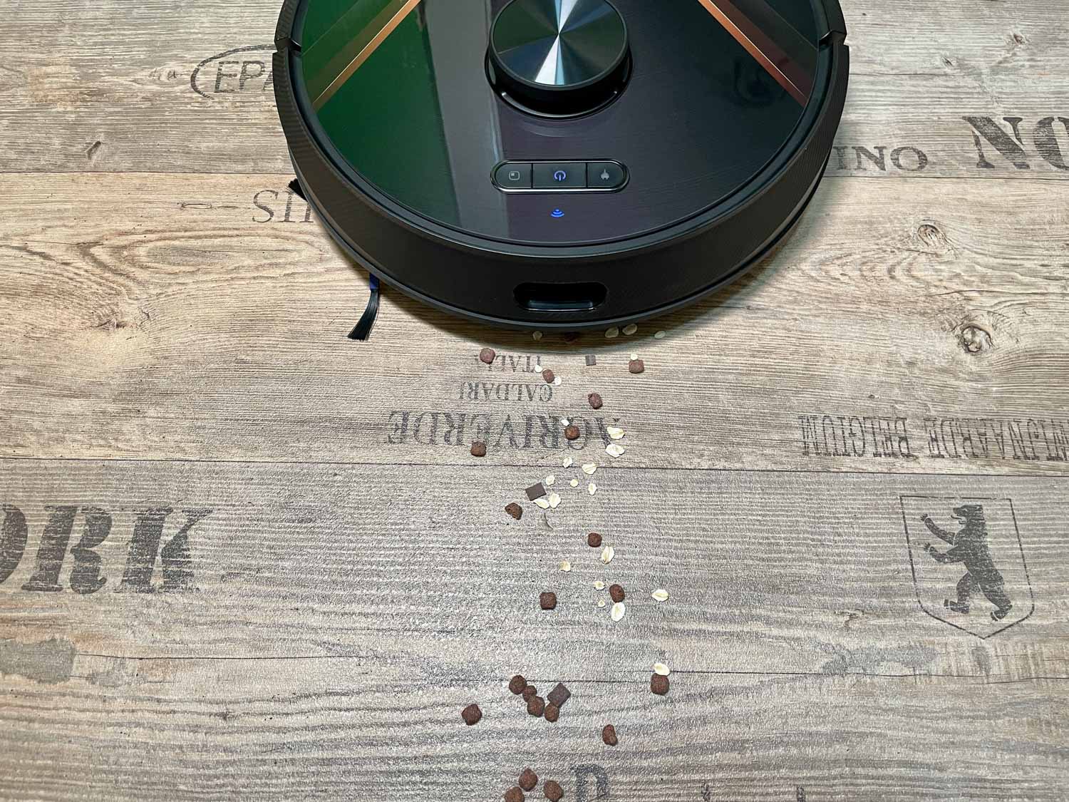 Auf Teppichboden erhöht der Roboter automatisch seine Saugstärke auf ein Maximum, was die Reinigungsleistung auf diesem natürlich um einiges verbessert. Die Teppicherkennung funktioniert sogar recht ordentlich, trotz fehlendem Ultraschallsensor. In meinem Test konnte er zuverlässig Katzenhaare, Katzenstreu, täglich aufkommender Straßenschmutz und anfallenden Staub entfernen. Alles in allem bin ich zufrieden mit der Saugleistung.