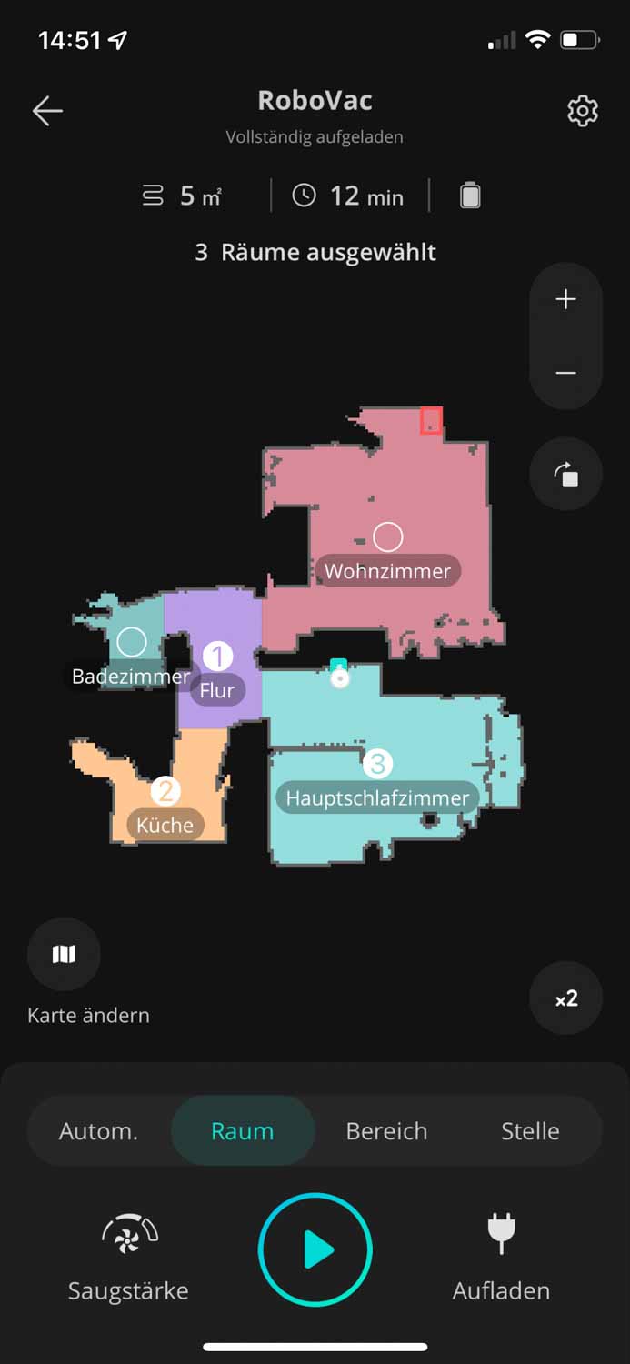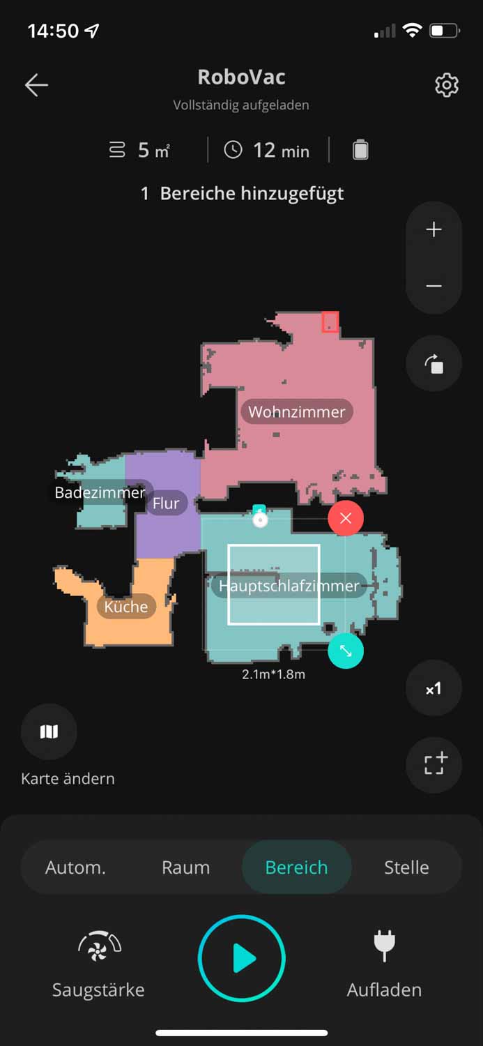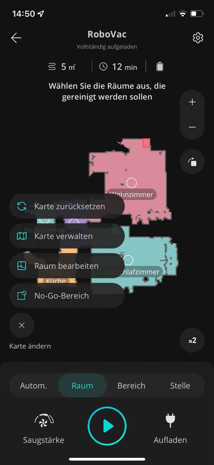 Die App des eufy RoboVac X8 Hybrid