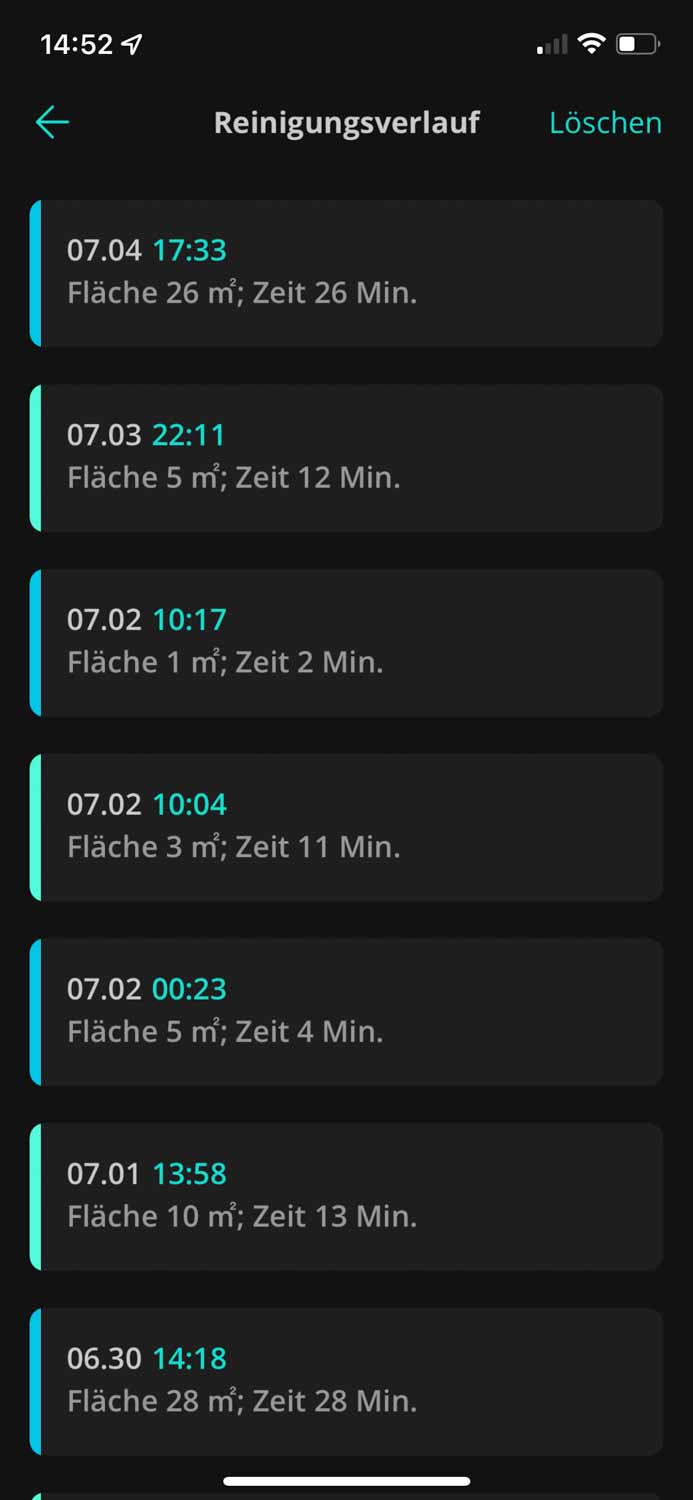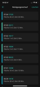 | Reinigungsverlauf | Vergangene Reinigungen können eingesehen werden. |